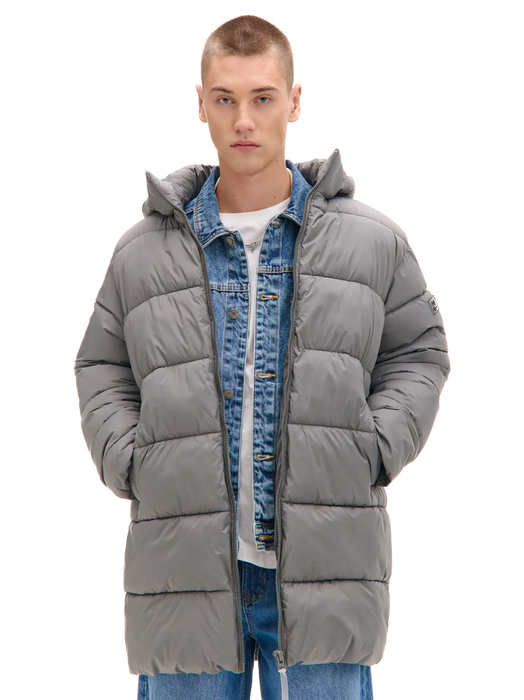 Cropp Kurtki Zimowe|Kurtki, Płaszcze*Jasnoszary pikowany płaszcz z kapturem jasnyszary