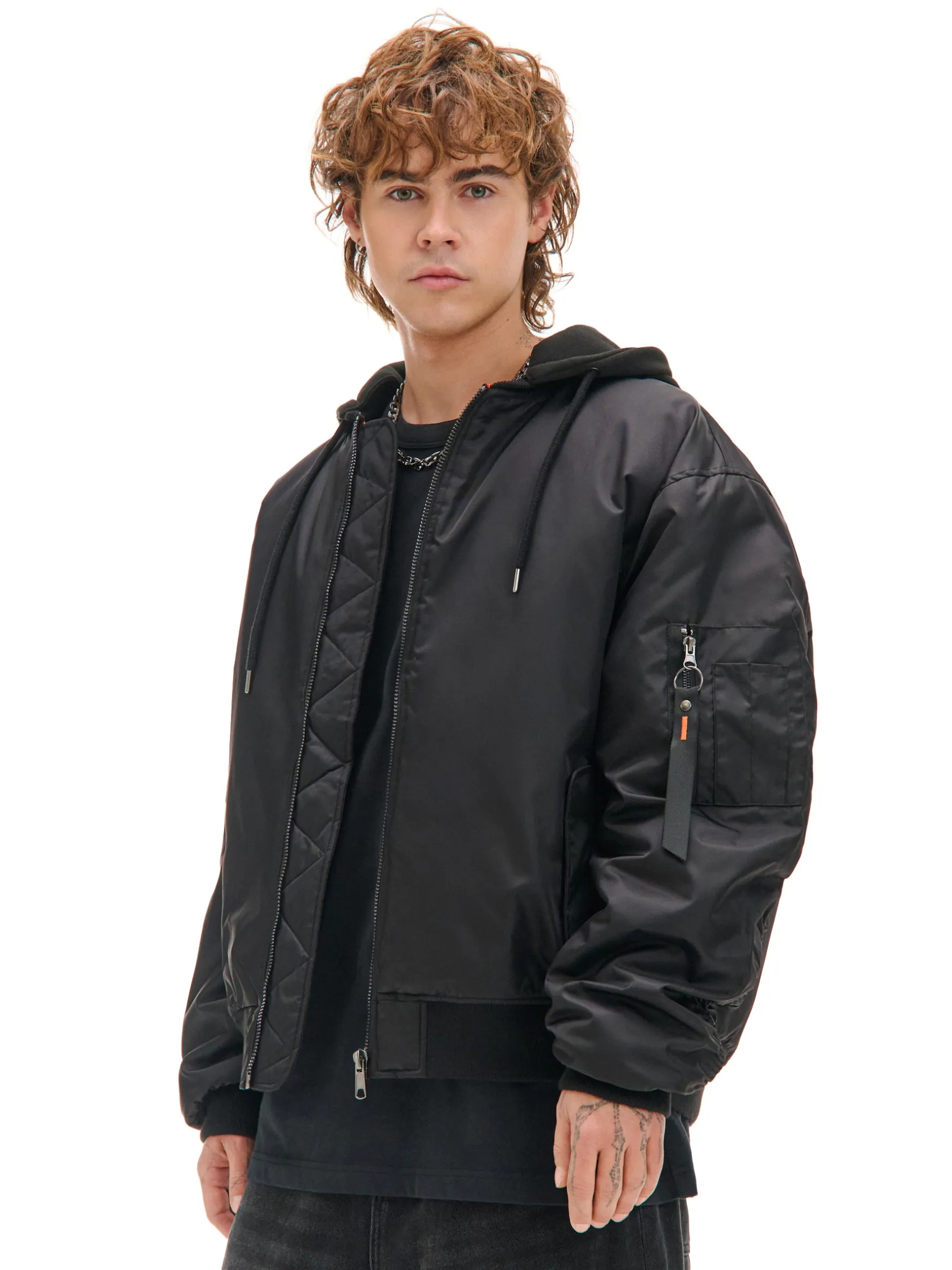 Cropp Kurtki Zimowe|Kurtki, Płaszcze*Kurtka bomberka z dzianinowym kapturem czarny