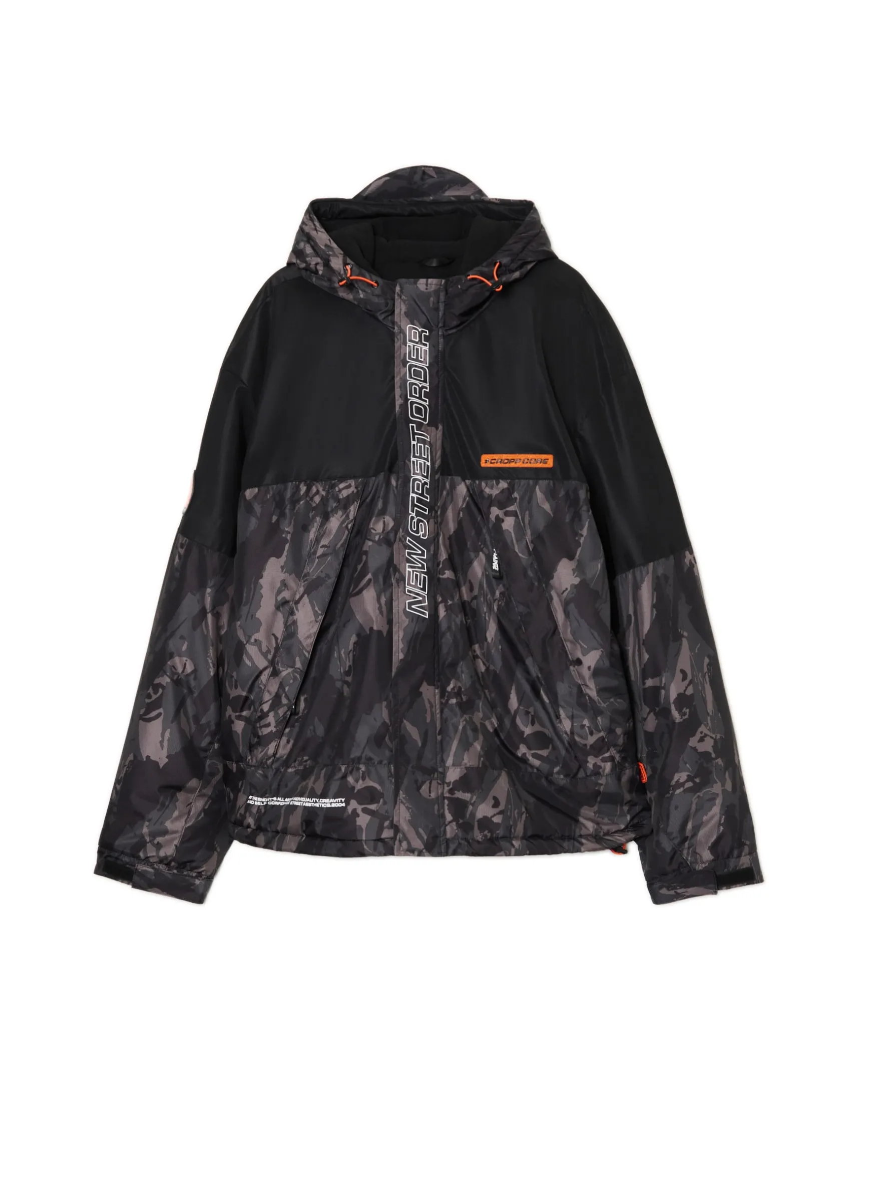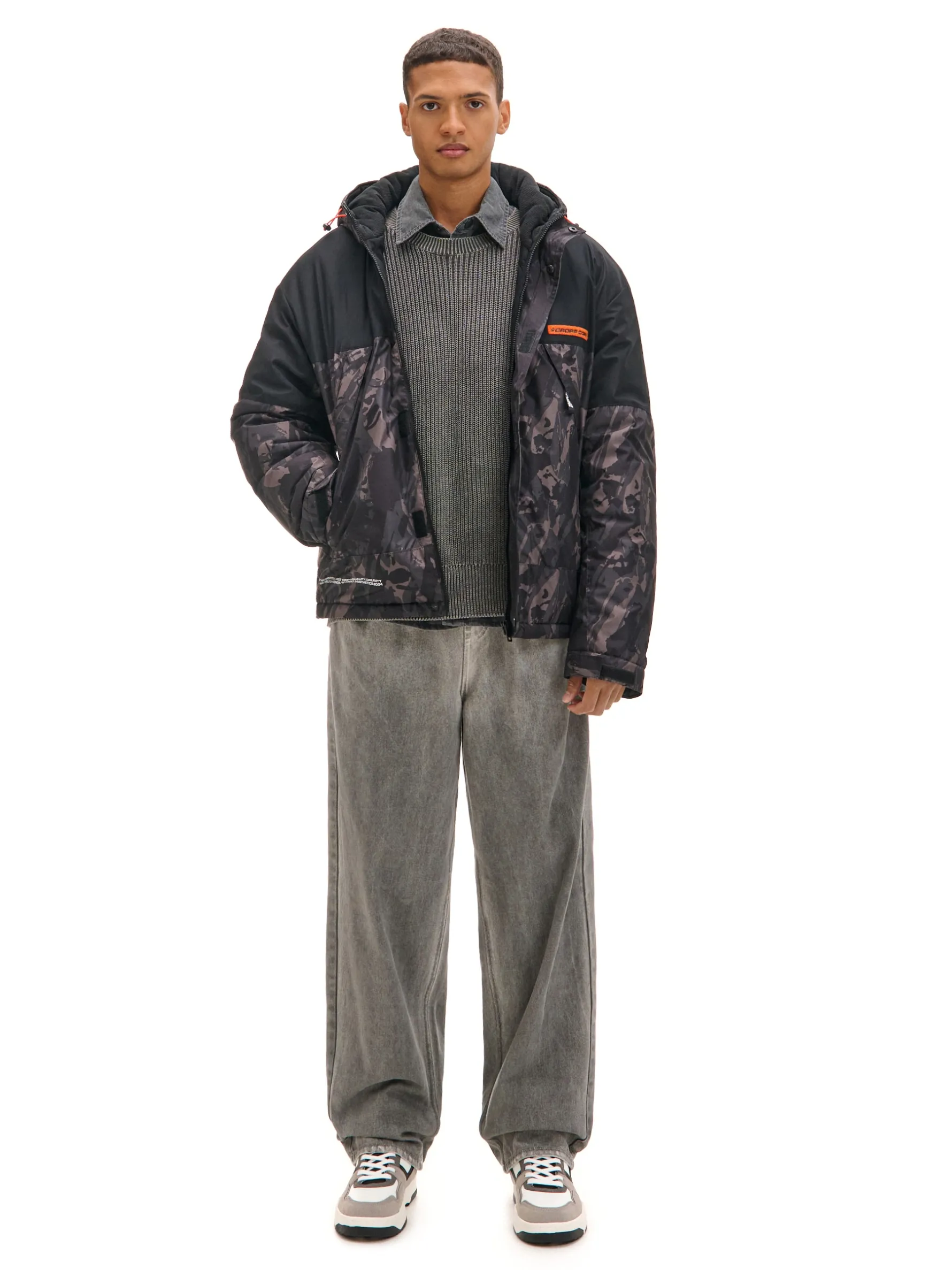 Cropp Kurtki Zimowe|Kurtki, Płaszcze*Kurtka z kapturem z nadrukiem moro czarny