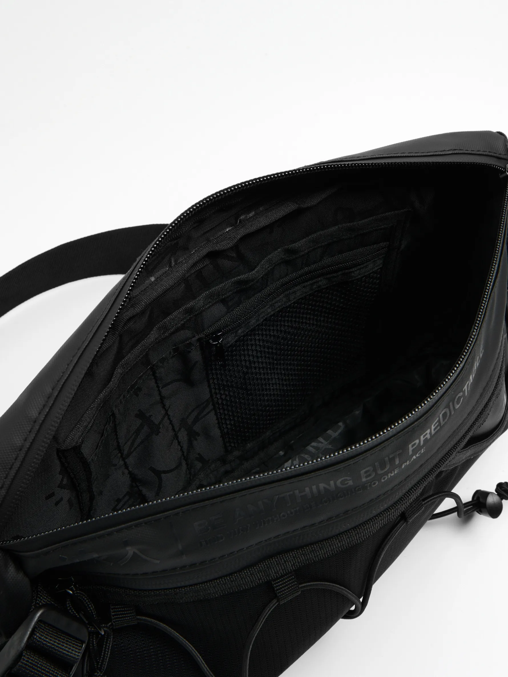 Męska saszetka, którą możesz przepiąć w pasie, jak i trzymać w ręce. Uszyta z wytrzymałej tkaniny typu ripstop. Wyposażona w wygodne regulacje, praktyczne kieszenie i dekoracyjne nadruki. Łap ten model, a wszystkie swoje itemy będziesz miał pod ręką! regulowany pasek z klamrą zatrzaskową możliwość regulacji szerokości obwodu, dzięki zapięciu dodatkowa regulacja za pomocą gumy ze stoperem dwa wąskie, regulowane paski po bokach główna komora z zapięciem na zamek praktyczne kieszenie wewnętrzne zewnętrzna kieszeń z siateczki mesh wygodny uchwyt u góry dodatkowe szlufki na klucze, zawieszki czy otwieracz do piwa nadruki tekstowe naszywka Cropp Wymiary produktu 19cm x 35cm x 10cm
