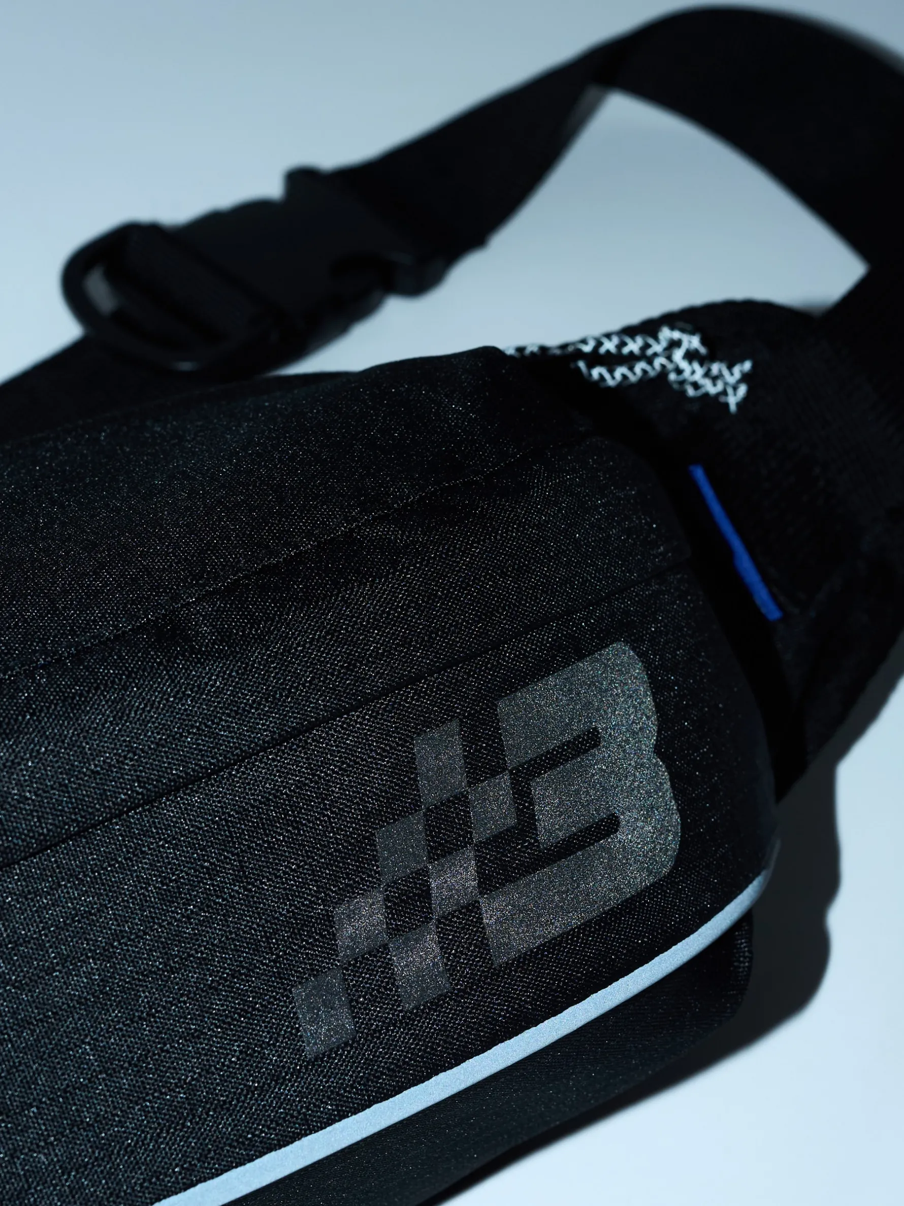 Męska czarna saszetka typu nerka uszyta z łączonych materiałów. Taki praktyczny i wygodny item będzie sztosowym dodatkiem podczas Baltic Games! wykonana z łączonych materiałów saszetka basic regulowany pasek, zapinany klamrą główna komora z zapięciem na zamek dodatkowa kieszeń z zapięciem na zamek wewnętrzna kieszeń z siateczki mesh z zapięciem na suwak dodatkowa regulacja za pomocą elastycznej szlufki wygodne i miękkie wykończenie przy biodrach nadruk z efektem reflective