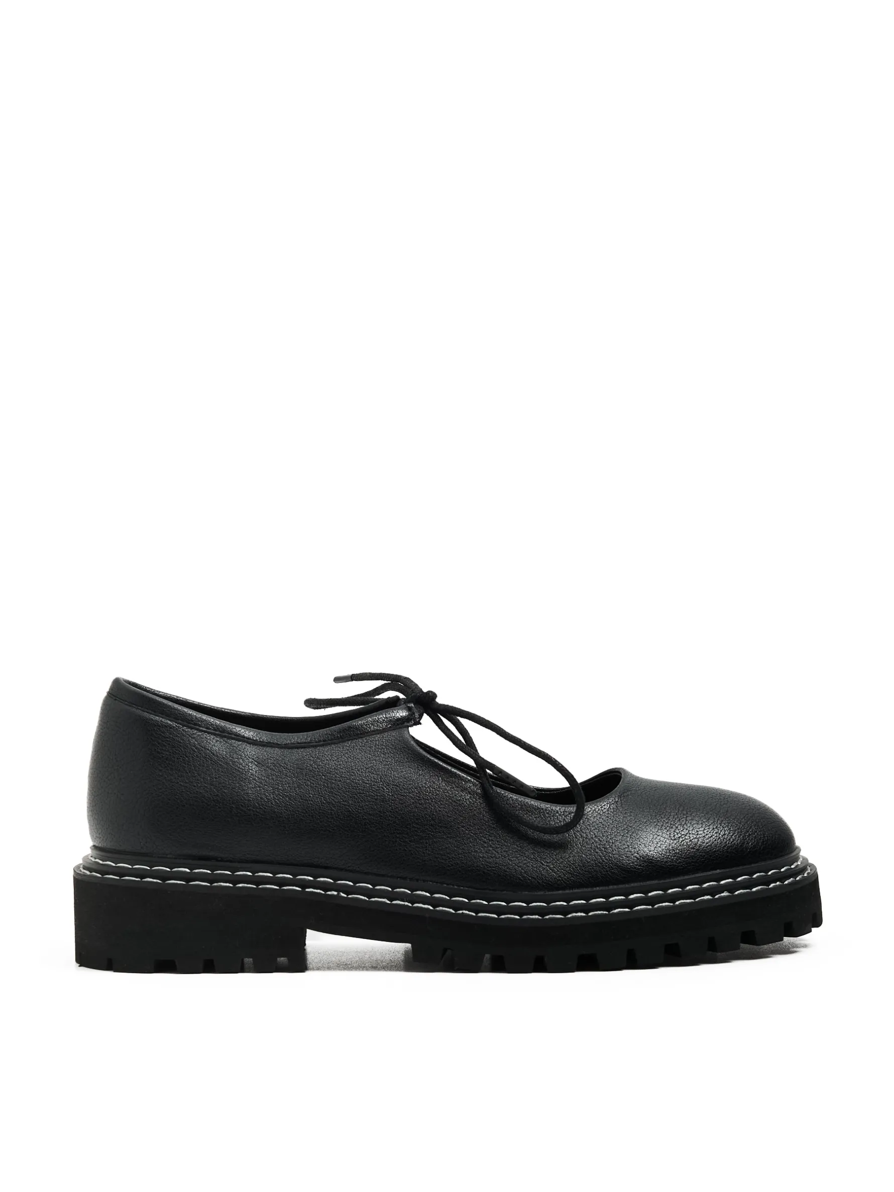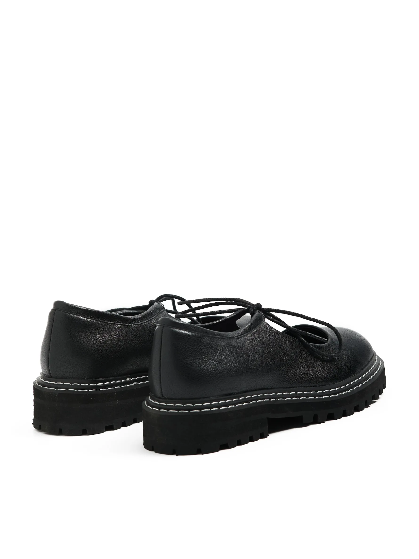 Półbuty damskie w kolorze czarnym, wykonane z imitacji skóry. Płaska podeszwa z niskim obcasem, ozdobne sznurowanie i kontrastowe przeszycia. Para idealna na ciepłe wieczory! cholewka z imitacji skóry wiązane na czarne sznurowadła traperowa, masywna podeszwa i obcas kontrastowe przeszycia
