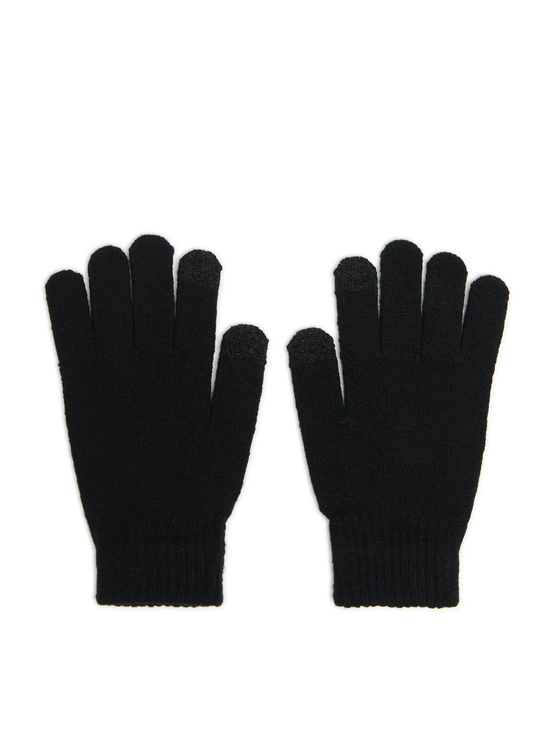 Klasyczne pięciopalczaste męskie rękawiczki uszyte z trwałej, chroniącej przed wiatrem dzianiny w kolorze czarnym. uszyte z gładkiej tkaniny prosty krój naszywka Cropp
