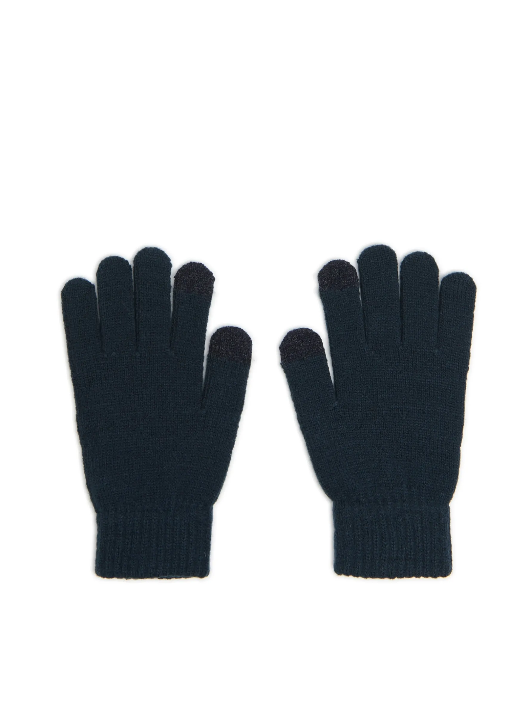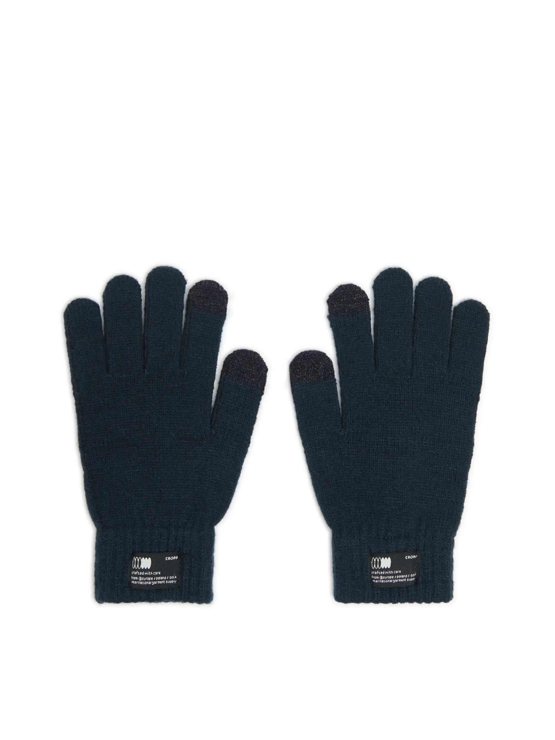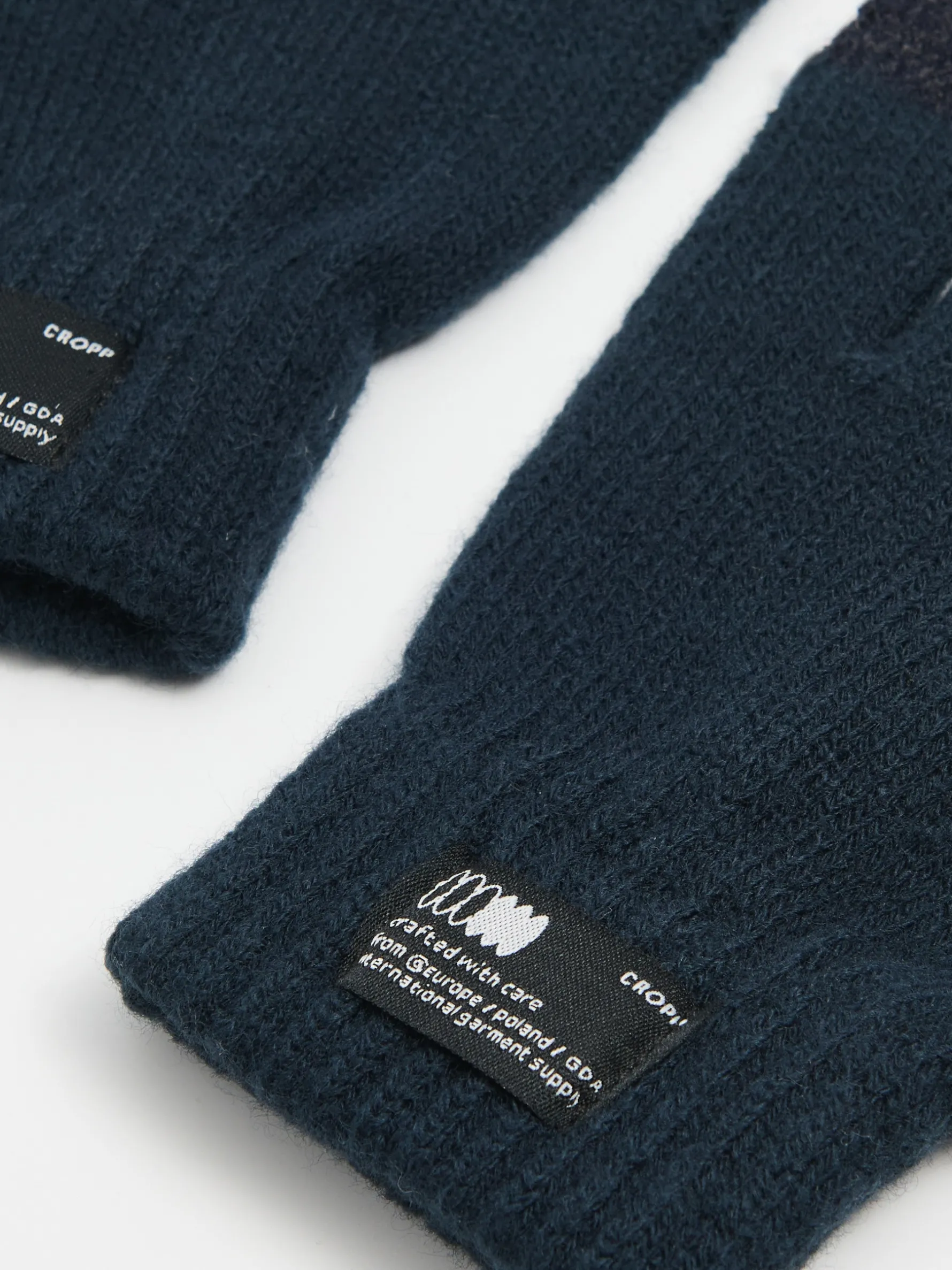 Klasyczne pięciopalczaste męskie rękawiczki uszyte z trwałej, chroniącej przed wiatrem dzianiny w kolorze granatowym. uszyte z gładkiej tkaniny prosty krój naszywka Cropp
