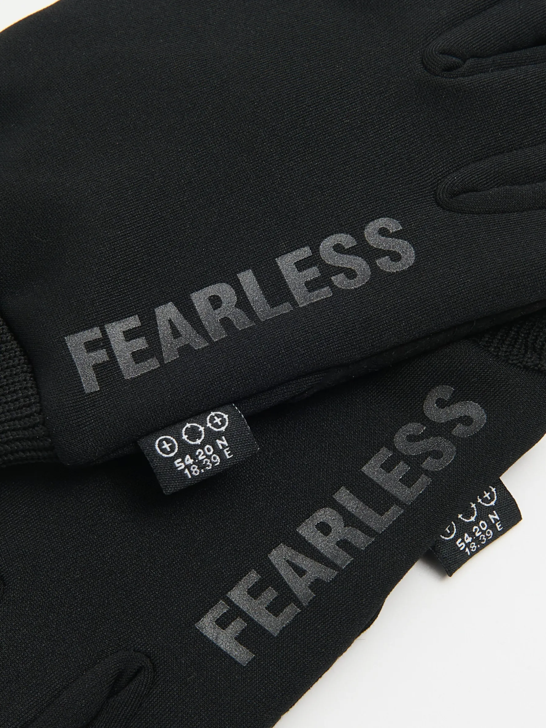 Szukasz klasycznych zimowych akcesoriów fitujących z różnymi outerwearami i bluzami? Mamy dla Ciebie czarne męskie rękawiczki uszyte z przyjemnej w dotyku mieszanki dzianin. Na górze delikatny, ozdobny napis 'fearless’. dzianina z dodatkiem elastycznych włókien prosty krój elastyczne ściągacze na nadgarstkach nadruki tekstowe