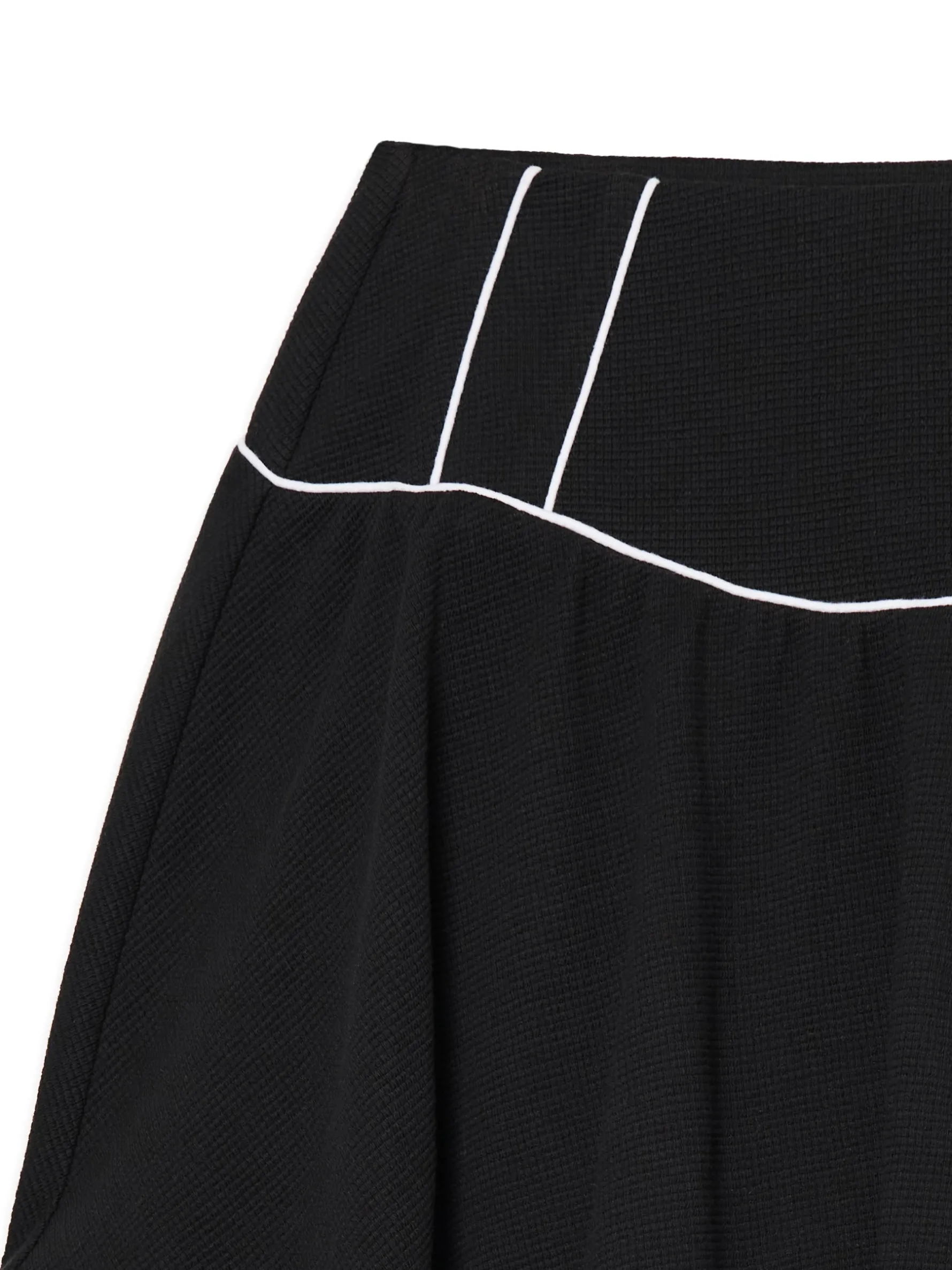 Damskie spódnico-spodenki typu skort, uszyte z dzianiny zawierające bawełnę. Idealne na plażę i nie tylko! regularny stan plisowana spódnica o kroju A pod spodem krótkie spodenki z boku kryty zamek ozdobione delikatną białą lamówką z przodu Wzrost modelki: 172 cm