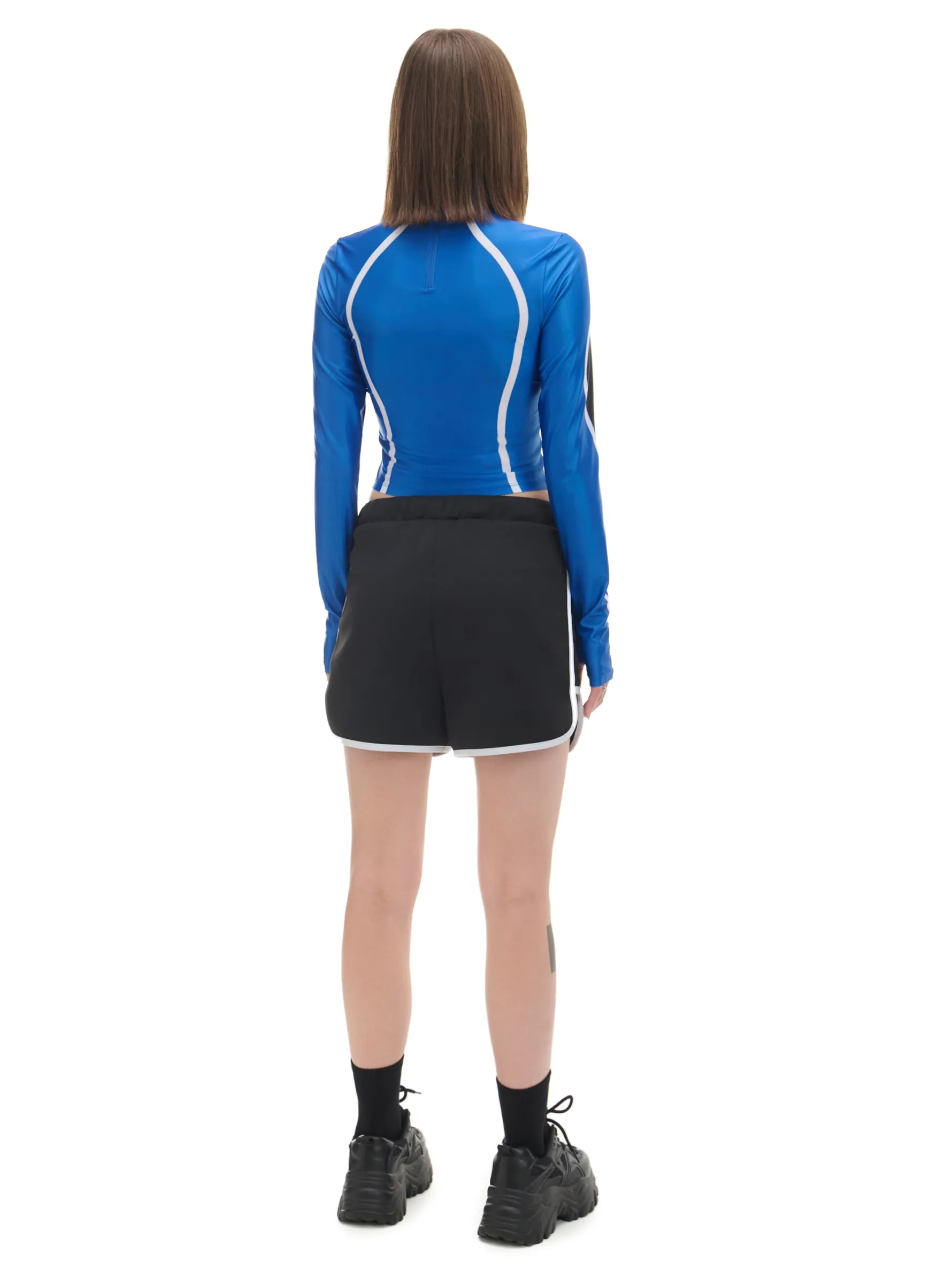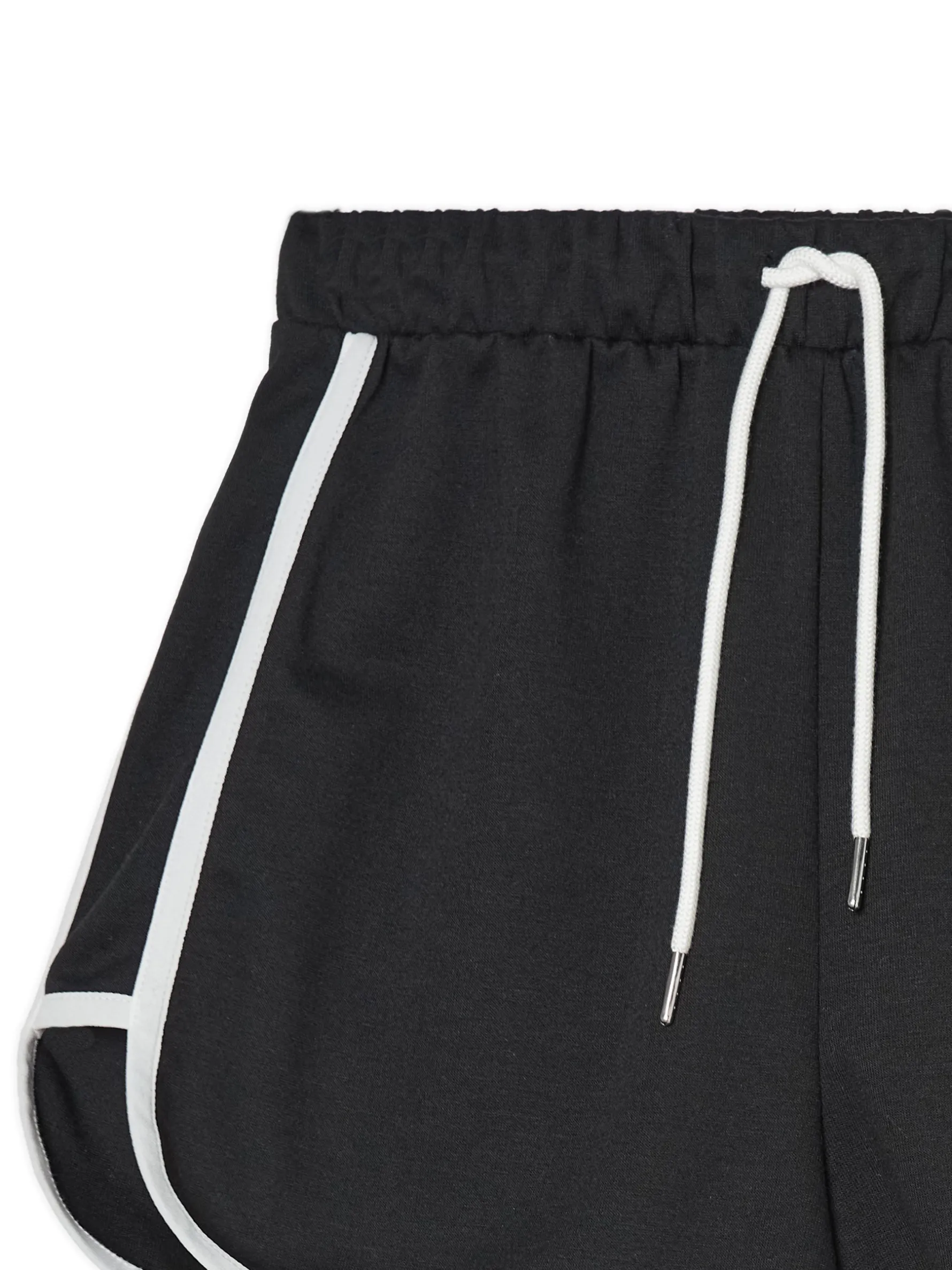 Dresowe szorty damskie, uszyte z dzianiny zawierającej bawełnę. W pasie gumka i sznurek do regulacji, po bokach ozdobne lampasy. Dostępny inny wariant kolorystyczny. Wzrost modelki: 172 cm