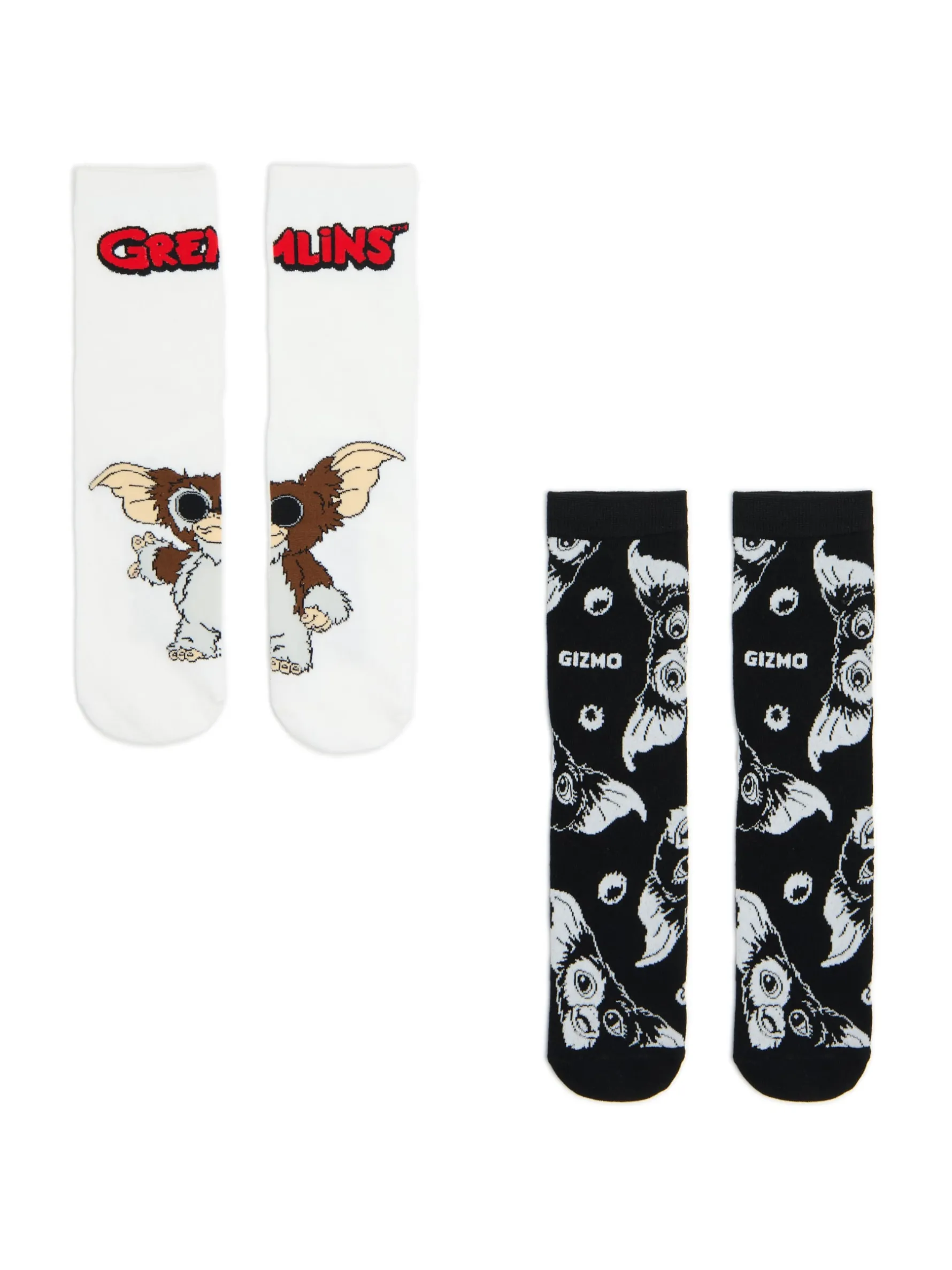 Zestaw dwóch par męskich długich skarpet uszytych z miękkiej w dotyku mieszanki dzianin. Na całej powierzchni nadruki z serii „Gremliny razrabiają”. Słodziak Gizmo nie sprawia kłopotów, jeśli: nie wystawiasz się go na światło, nie karmisz po północy, nie oblewasz wodą. GREMLINS and all related characters and elements © & TM WBEI. (s.24)