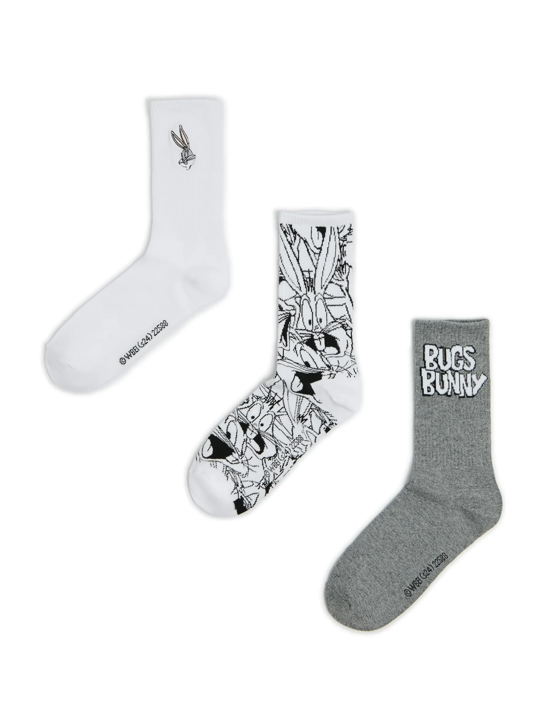 Zestaw trzech par męskich skarpet, uszytych z materiału o dużej zawartości bawełny. Na każdej skarpecie inny motyw z serii Looney Tunes. dzianinowy materiał z bawełną dłuższy, prosty krój nadruk z motywem Looney Tunes LOONEY TUNES and all related characters and elements © & ™ Warner Bros. Entertainment Inc. WB SHIELD: © & ™ WBEI. (s24)