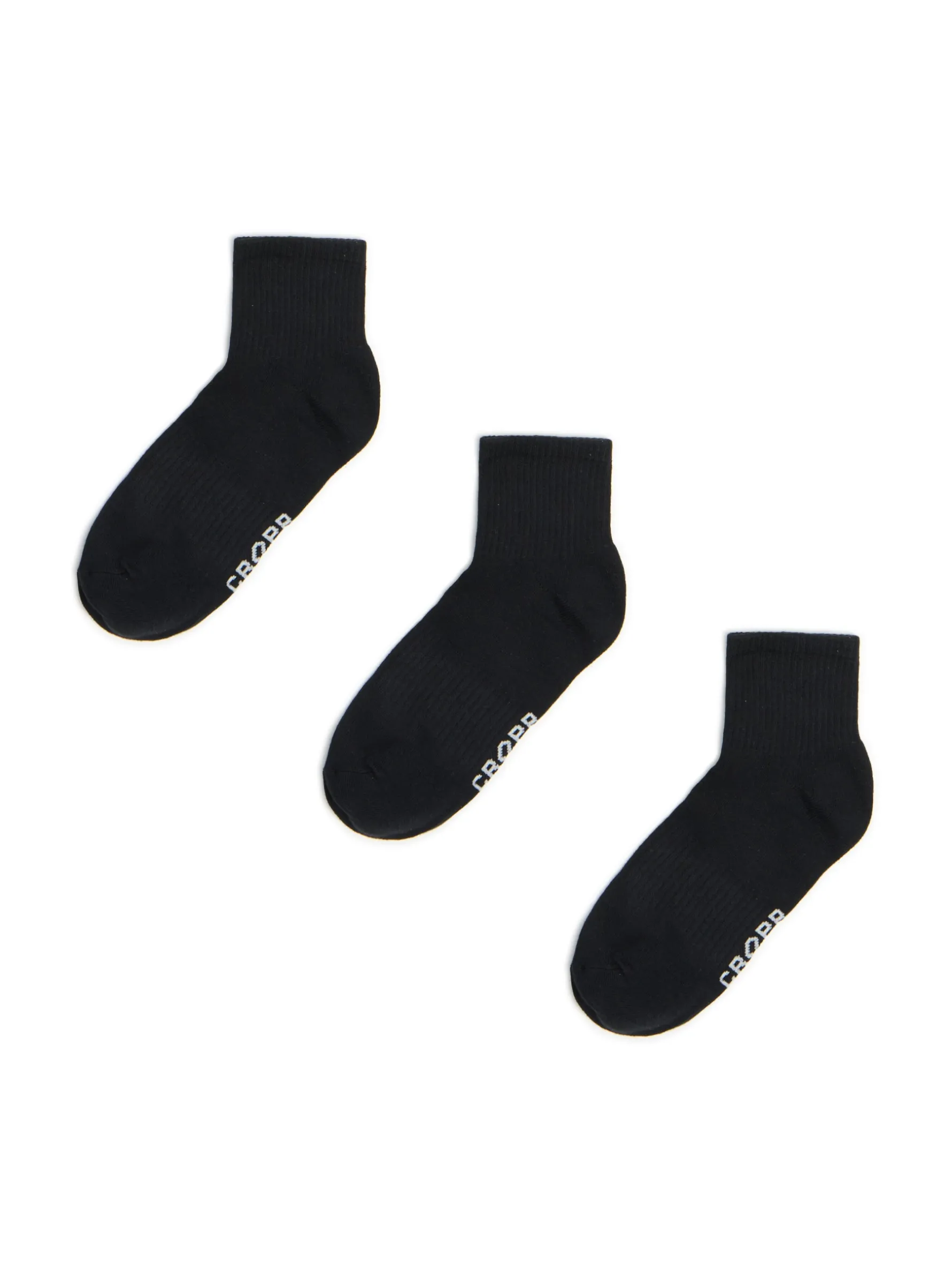 Zestaw trzech par męskich skarpet uszytych z dzianiny o dużej zawartości bawełny z brandowym, kontrastowym nadrukiem. dzianinowy materiał z bawełną prosty krój prążkowany materiał przy kostkach i śródstopiu nadruk z napisem Cropp