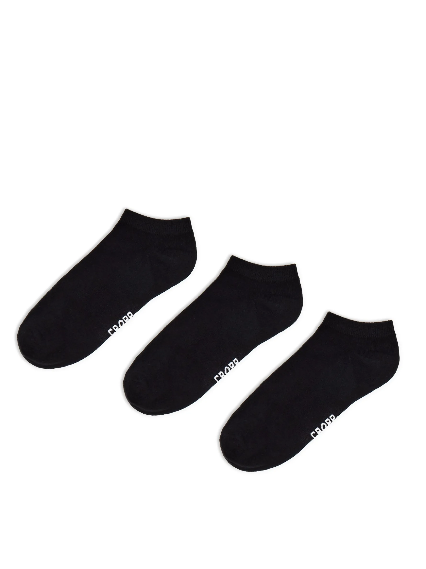 Trójpak krótkich skarpet męskich uszytych z elastycznej dzianiny o wysokiej zawartości bawełny. Dostępne w innej wersji kolorystycznej.
