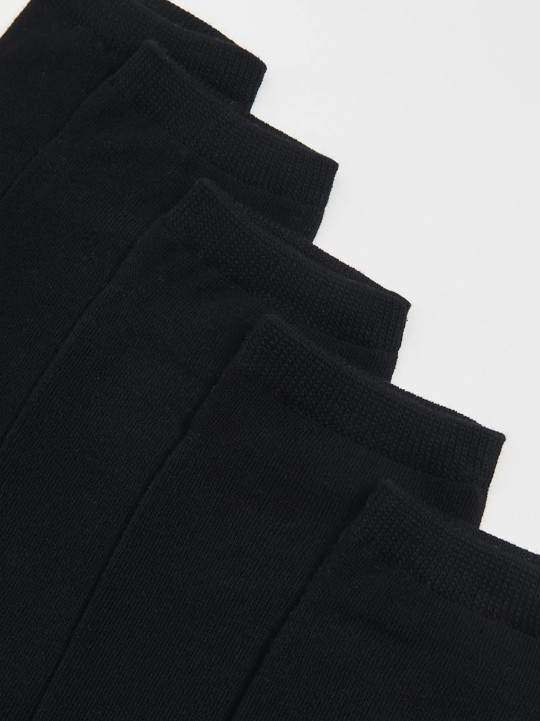 Pięciopak męskich krótkich skarpetek w kolorze czarnym. Uszyte z dzianiny o wysokiej zawartości bawełny.