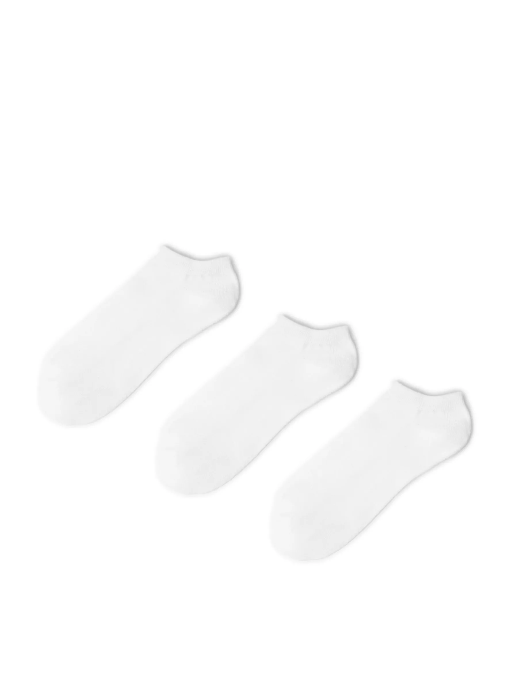 Trójpak damskich skarpetek o krótkim kroju, uszytych z dzianiny o wysokiej zawartości bawełny.