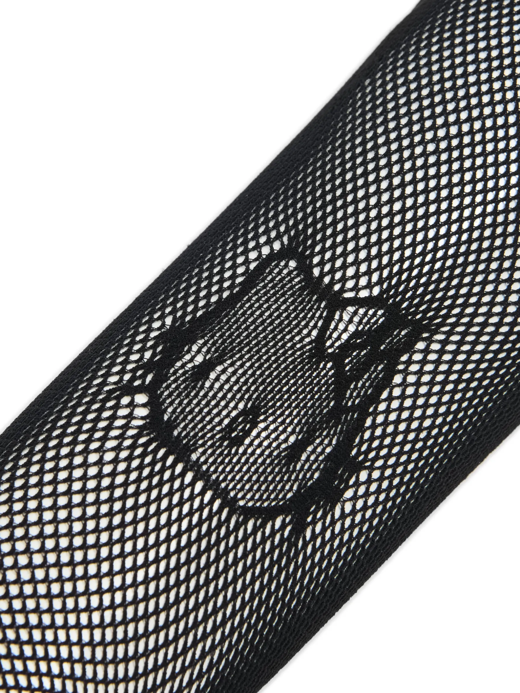 Czarne damskie rajstopy typu kabaretki z wygodną, elastyczną gumką w pasie i wzorem Hello Kitty na całej powierzchni materiału. HELLO KITTY © 2024 SANRIO