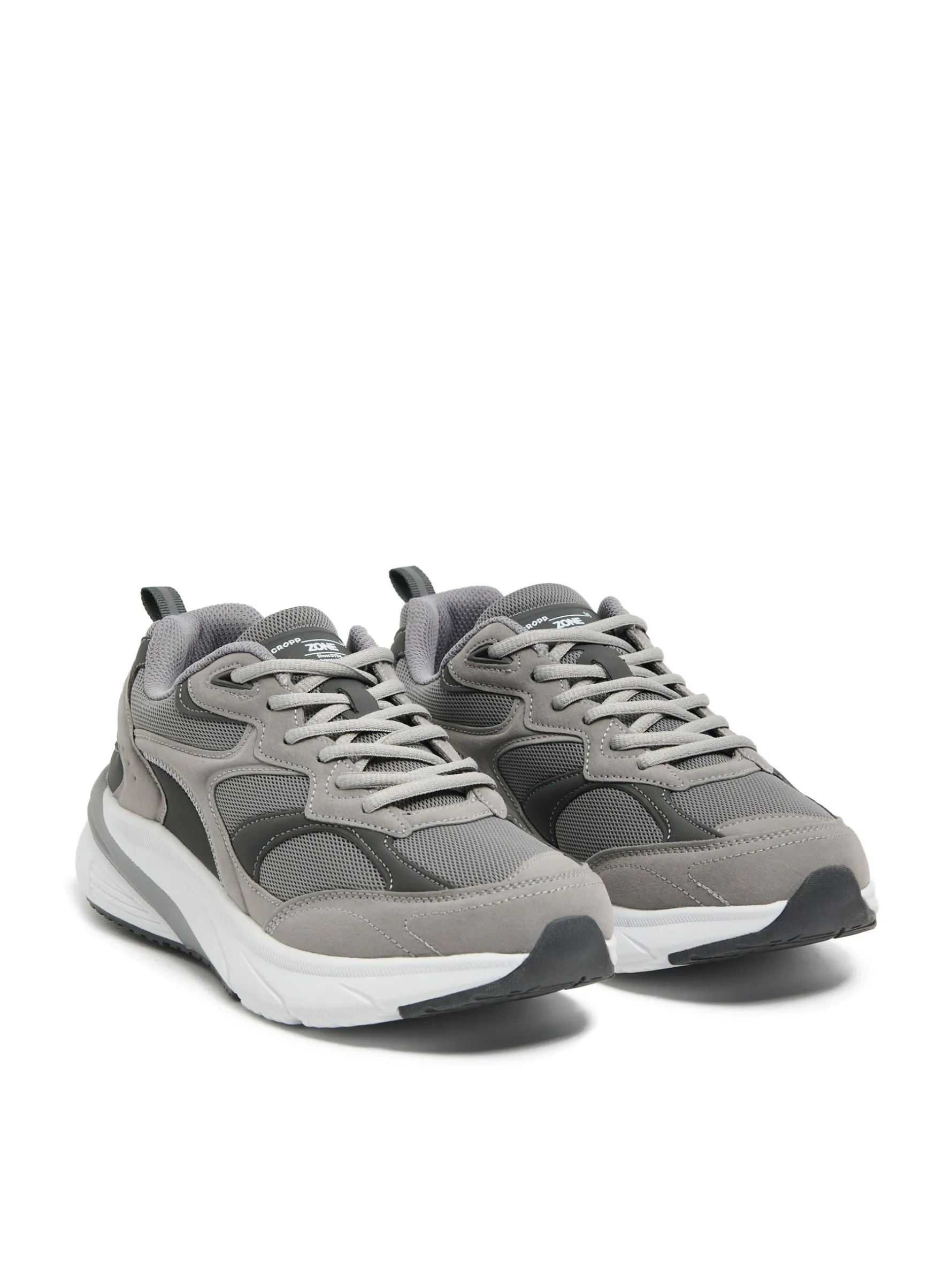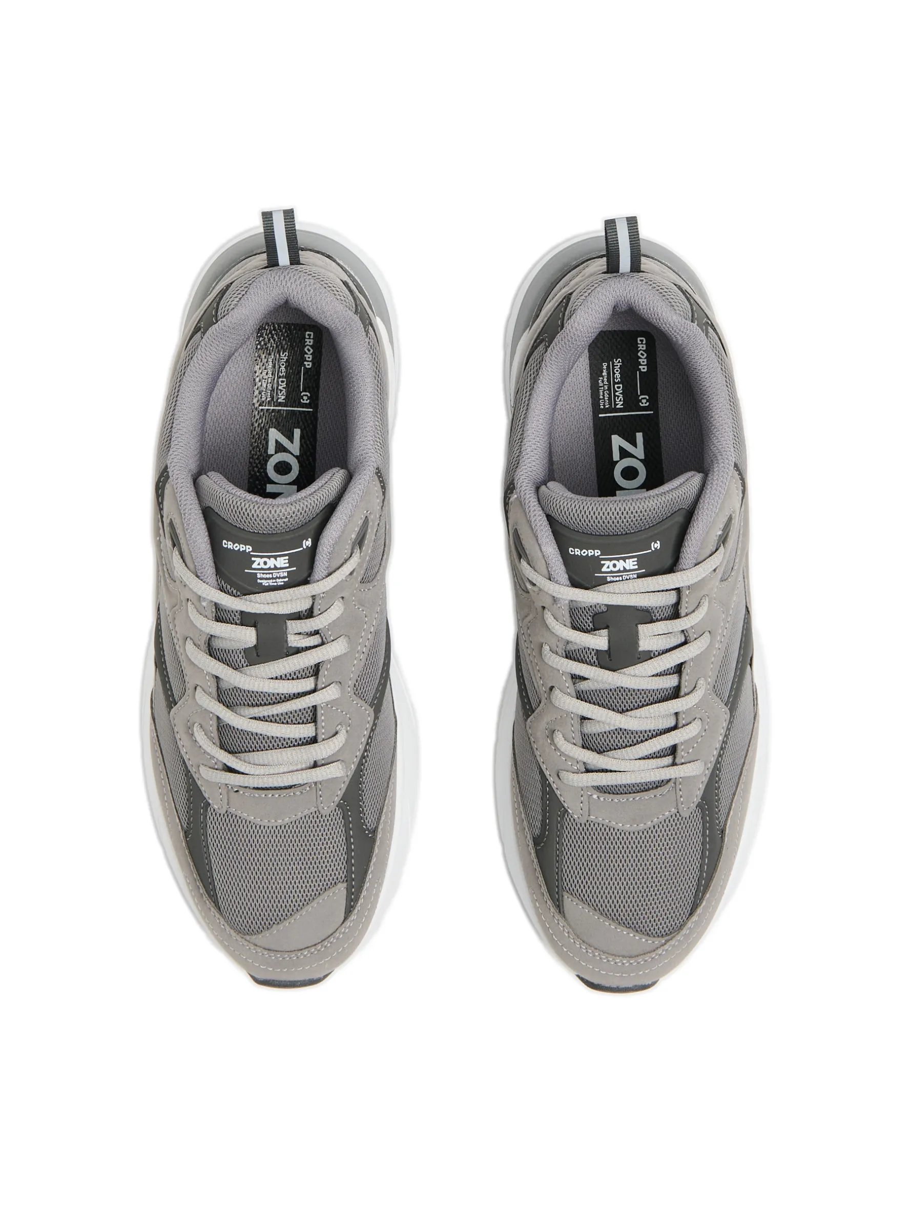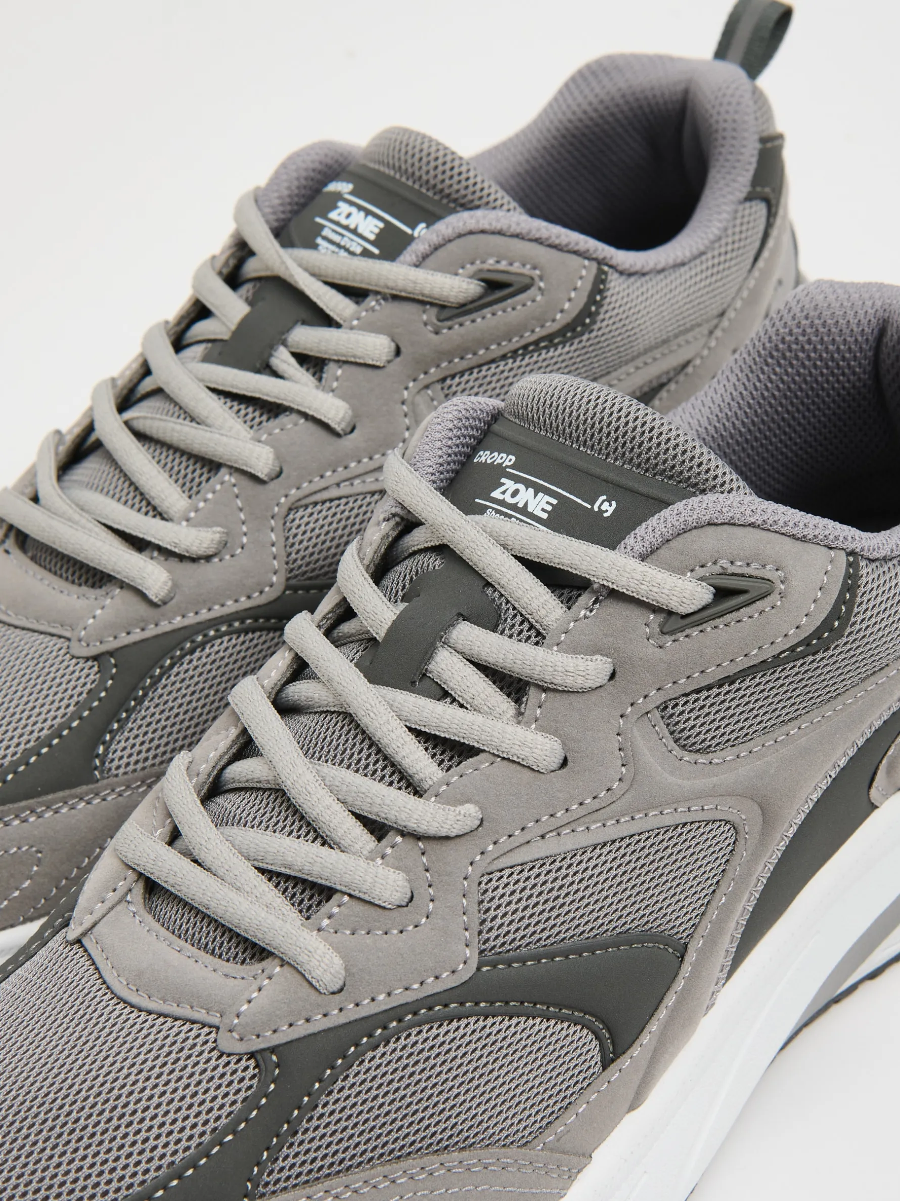 Buty męskie typu sneakersy wykonane z łączonych materiałów. Wyposażone w grubą, wysoką podeszwę i elastyczną cholewkę z elementami siateczki mesh. Solidny item na rower, spacer z psem, czy wyście na miasto z ekipą. cholewka z siateczkowego materiału gruba podeszwa wykonana z mieszanki z pianki EVA i gumy termoplastycznej wiązane na okrągłe sznurówki w tym samym kolorze poręczny uchwyt ułatwiający zakładanie ozdobne naszywki i przeszycia na całości