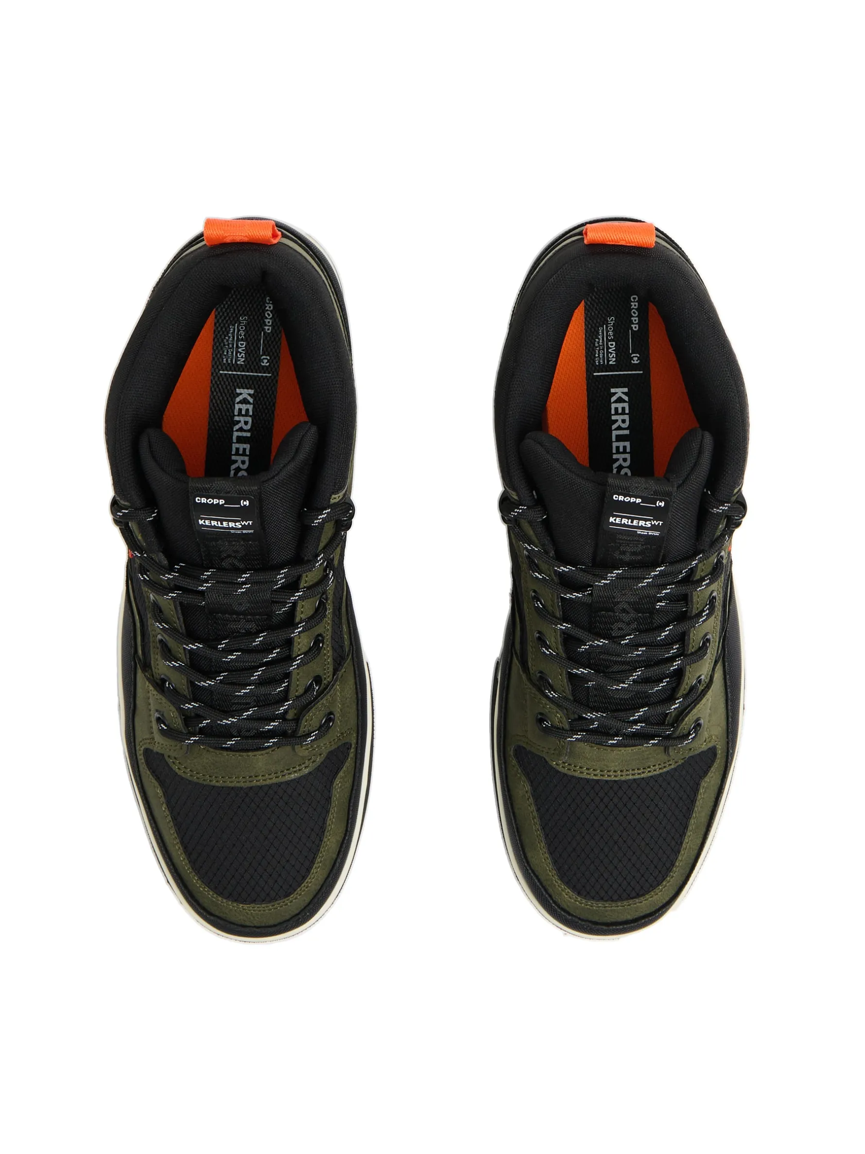 Te zimowe męskie snekaersy z delikatnie podwyższoną cholewką czekają na Ciebie! elastyczna cholewka z łączonych materiałów dwukolorowa podeszwa z termoplastycznej gumy lekkie gąbkowanie wokół kostki wiązane na świecące w ciemności sznurówki dodatkowe naszywki z efektem reflective dekoracyjne wstawki ze sztucznej skóry