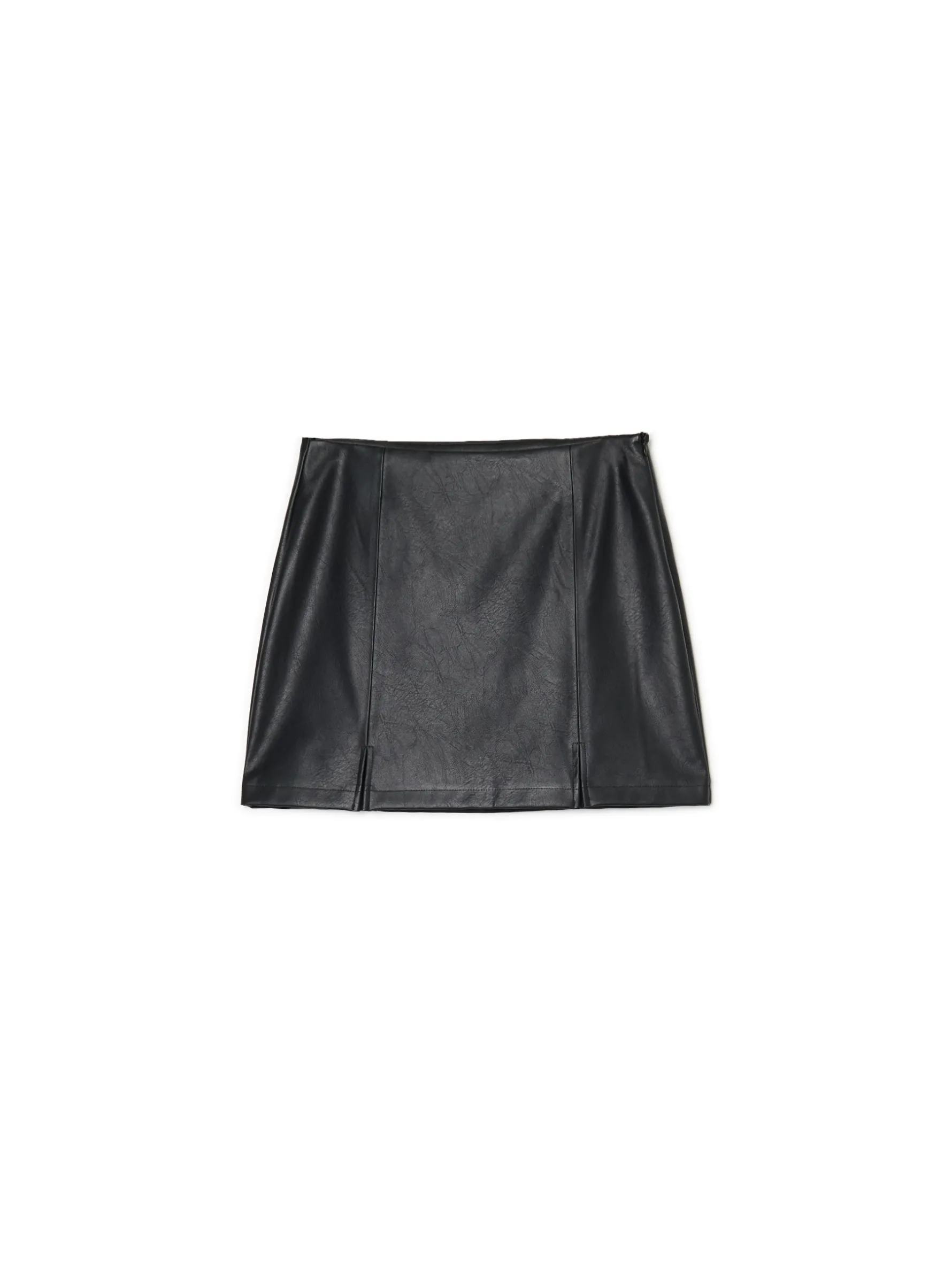 Krótka czarna spódnica, uszyta ze sztucznej skóry. Idealna dla fanek stylu retro! kryty zamek z boku dwa rozcięcia z przodu krótki, dopasowany krój Wzrost modelki: 177 cm