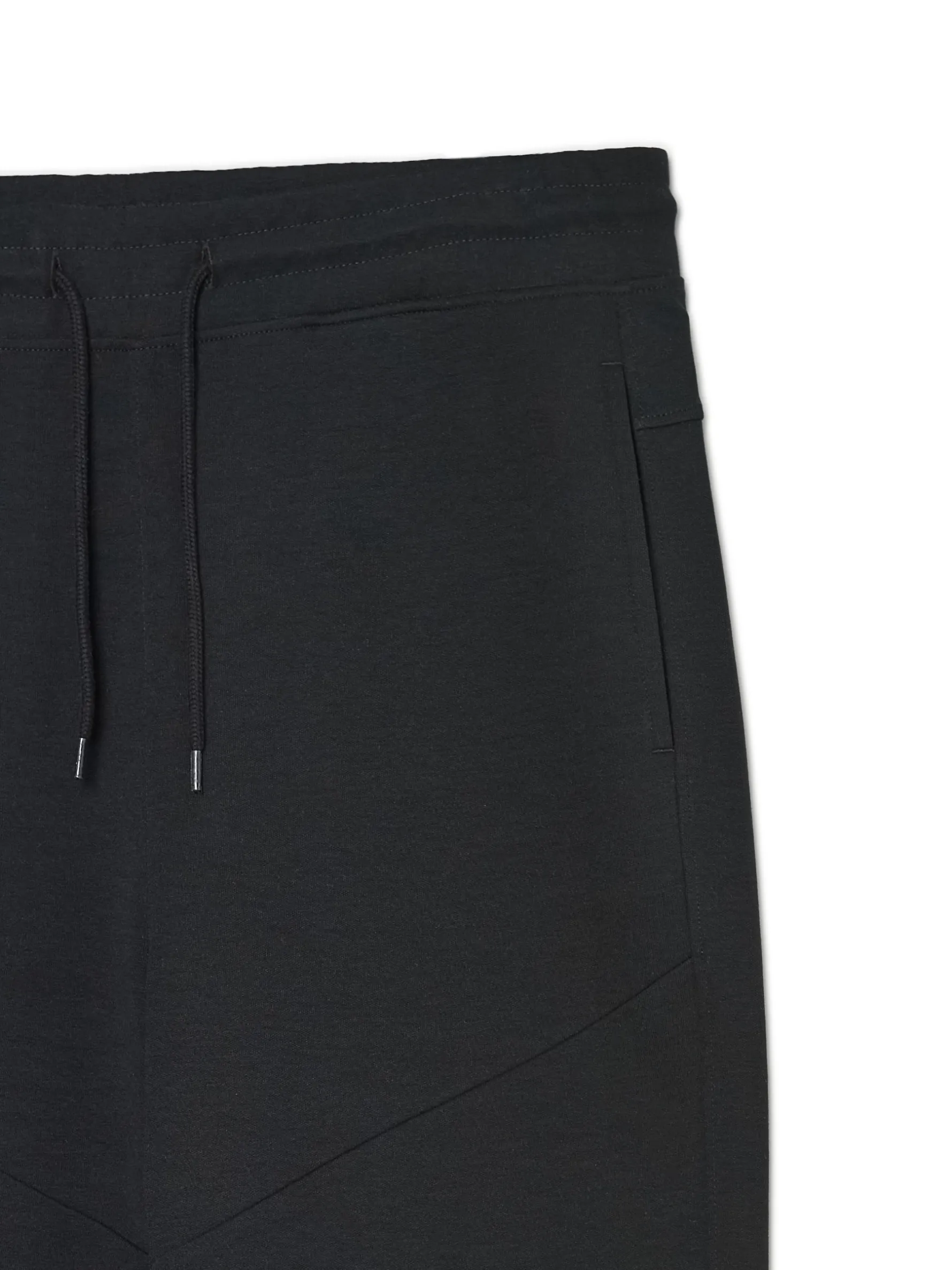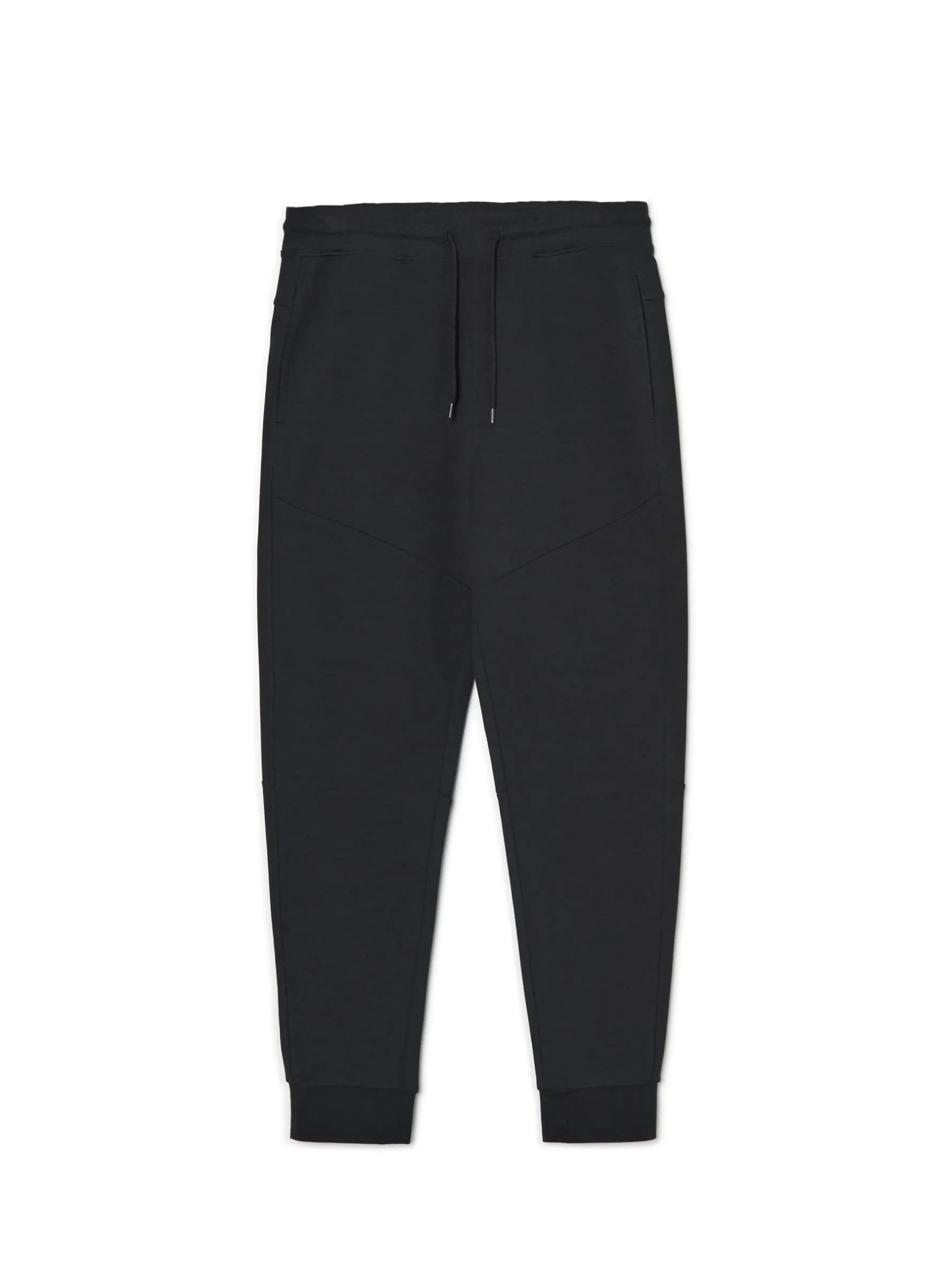Męskie spodnie dresowe o kroju typu jogger, uszyte z dzianiny zawierającej bawełnę. regularny krój, w pasie elastyczna gumka i sznurek do regulacji długa nogawka, zakończona ściągaczem trzy kieszenie, w tym jedna z tyłu zapinana na zamek ozdobne przeszycia na udach i kolanach
