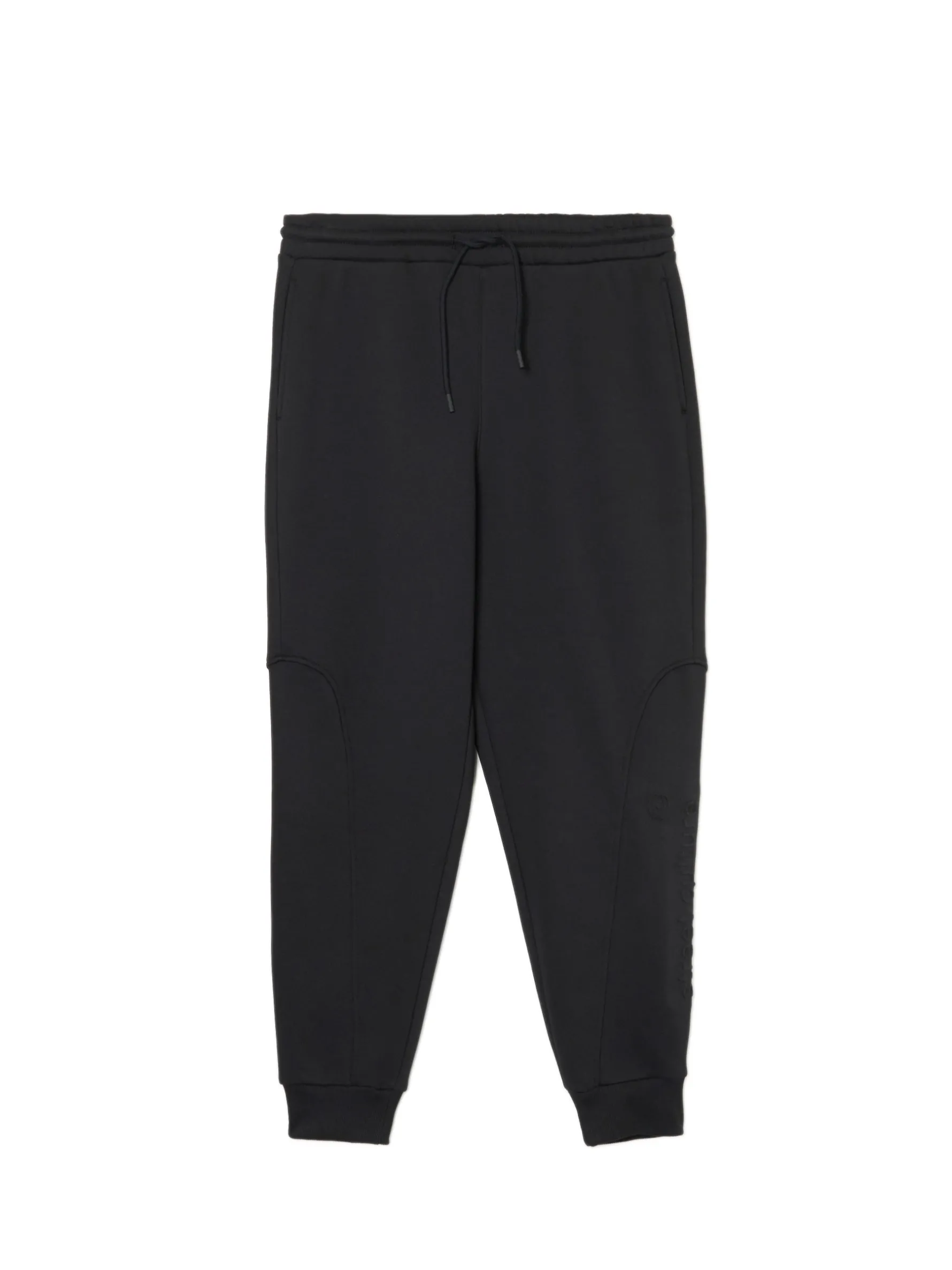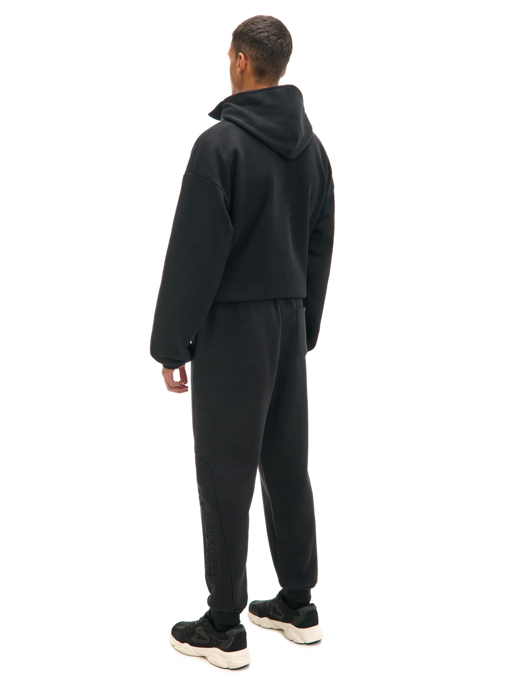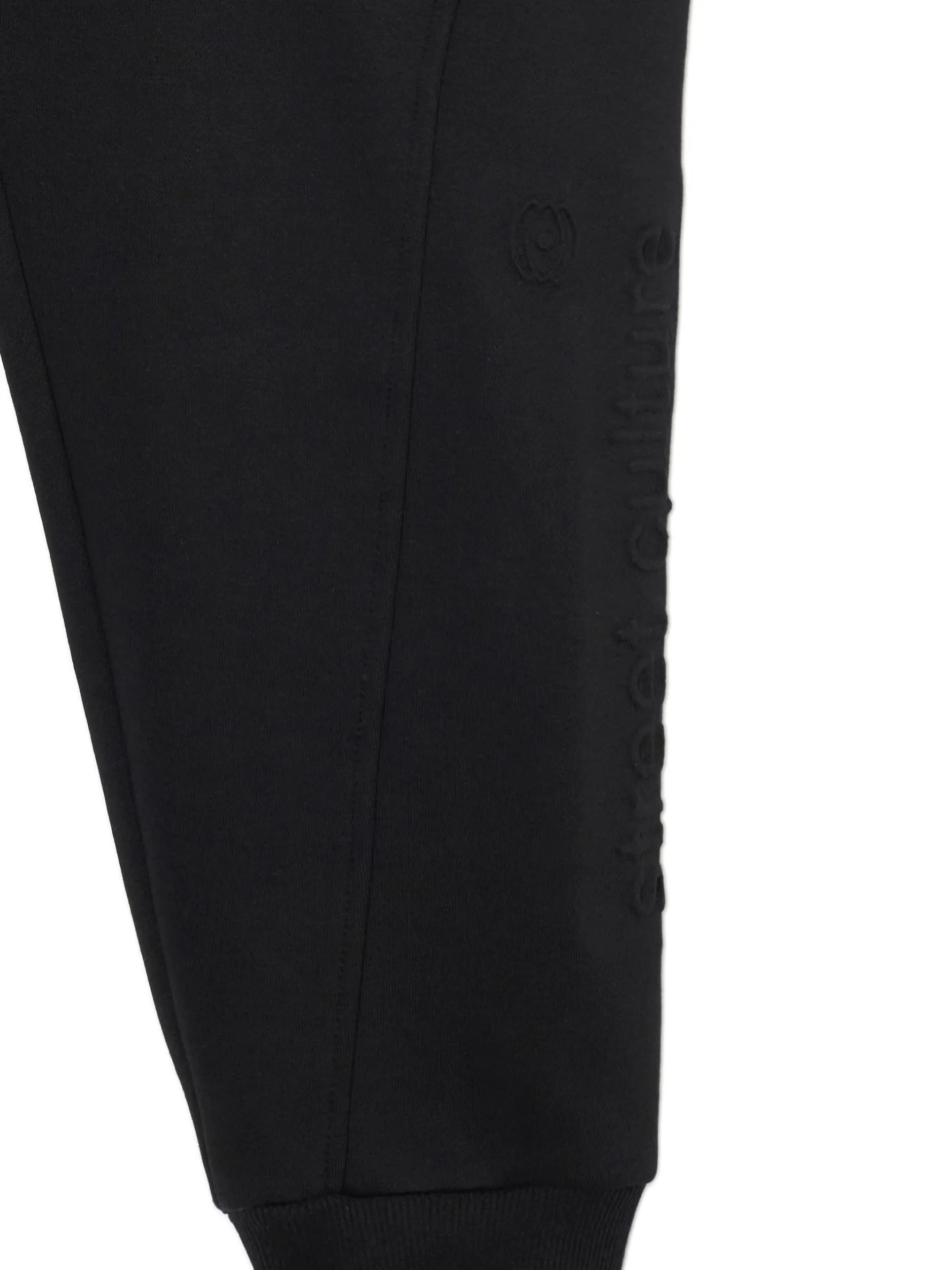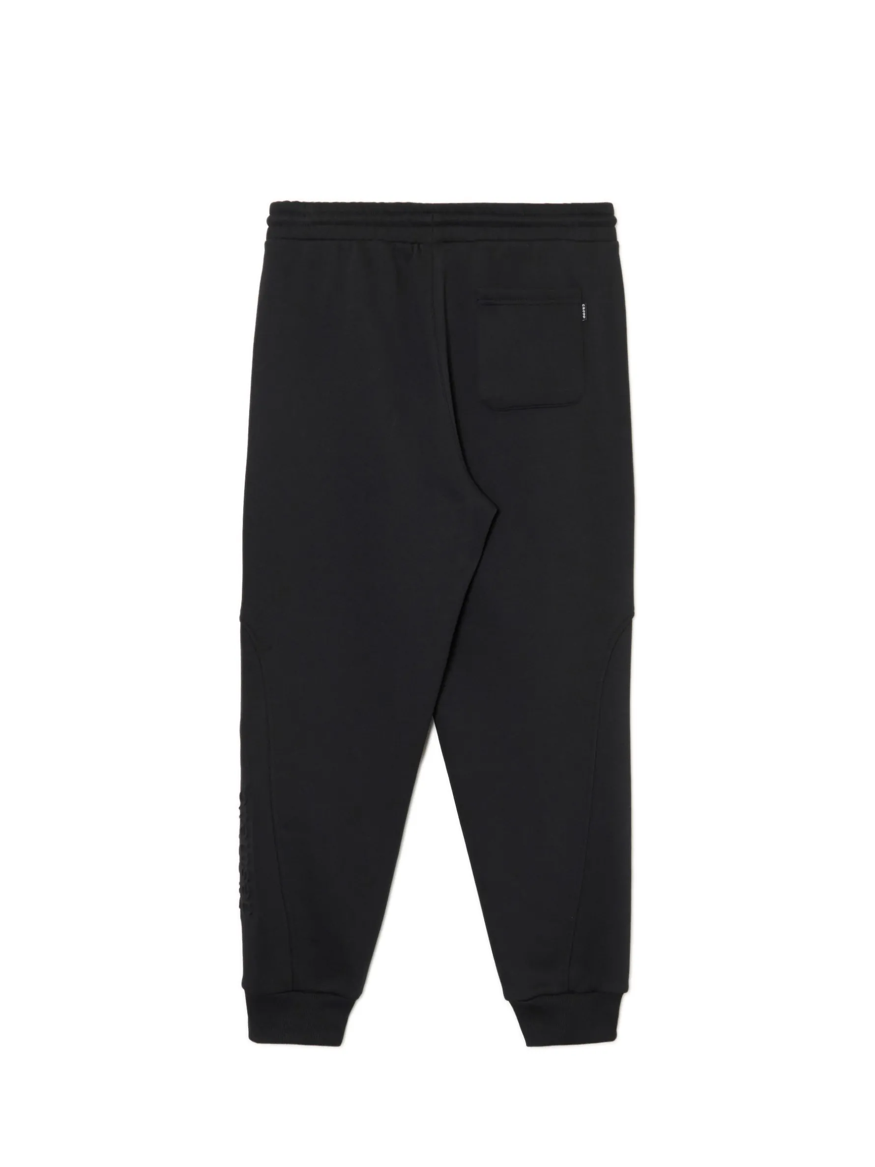 Czarne męskie dresy z wyjątkowym nadrukiem na nogawce techniką emboss. Materiał jest miękki w dotyku i delikatnie wypukły, przez co wpisuje się zarówno w sportowy, jak i casualowy styl. dzianinowy materiał z bawełną dresowe joggery o kroju regular guma w pasie ze sznurkiem do regulacji otwarte kieszenie po bokach naszywana kieszeń z tyłu nadruk na nogawce z wykorzystaniem techniki emboss naszywka Cropp