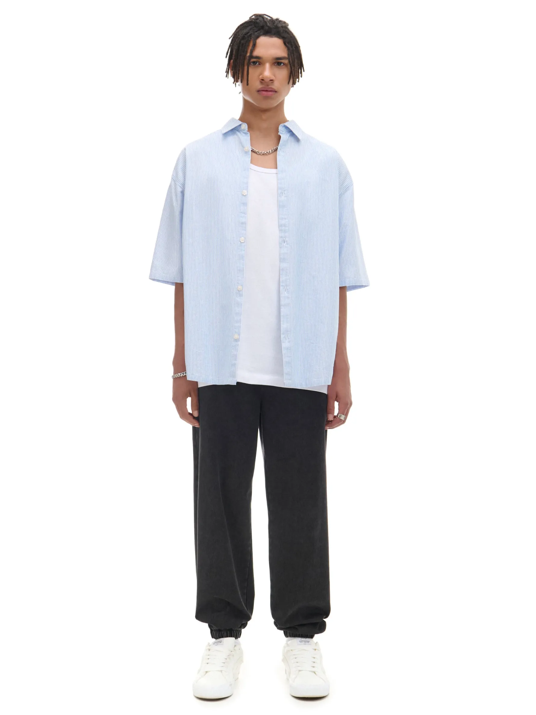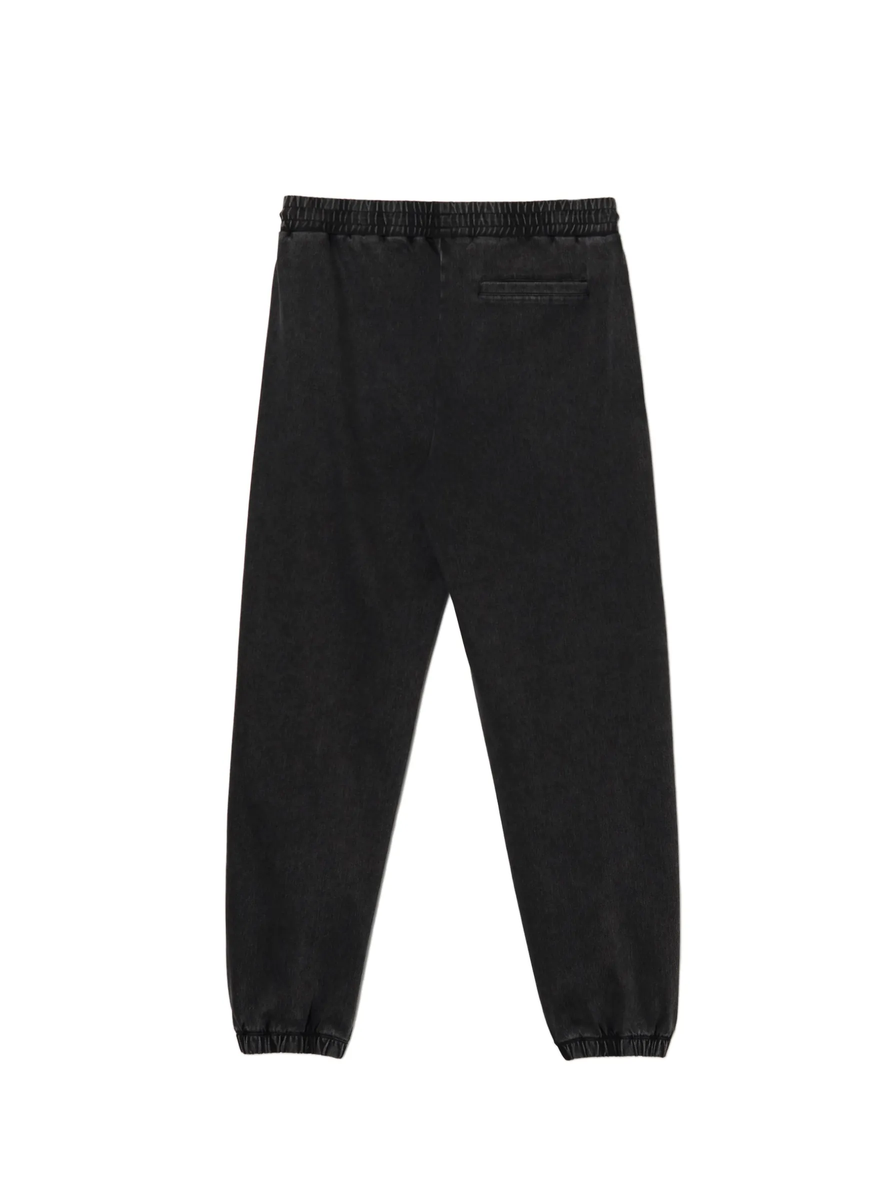 Męskie spodnie typu joggery, uszyte z denimu z lekkim efektem sprania. Świetnie fitują zarówno z dresową bluzą, jak i jeansową kurtką. Sprawdź! 100% bawełny regularny stan guma w pasie ze sznurkiem do regulacji długie nogawki wykończone ściągaczem otwarte kieszenie po bokach naszywana kieszeń z tyłu delikatny efekt sprania