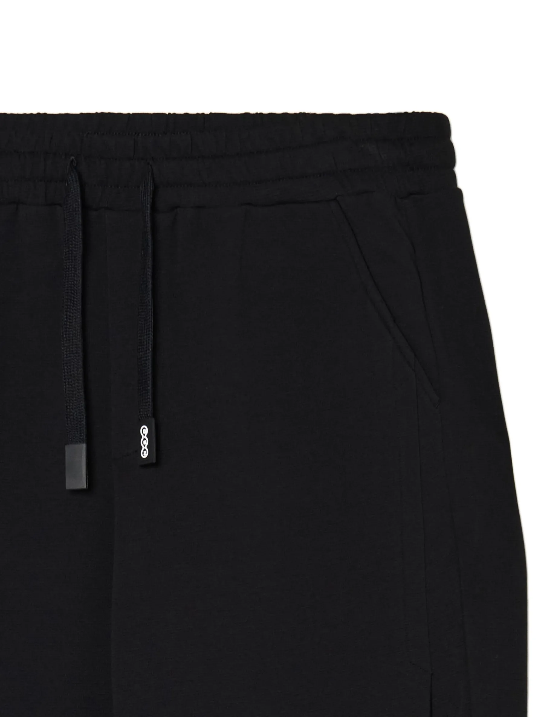 Męskie, czarne spodnie dresowe nadają się na każdą porę i do każdej aktywności! Dwie kieszenie z przodu i jedna z tyłu to praktyczne rozwiązanie dla osób, które lubią mieć wszystko pod ręką. bawełna zapewnia wysoki komfort termiczny dodatkowe elastyczne włókna dopasowują spodnie do sylwetki długa nogawka zakończona ściągaczem z gumką w środku to gwarancja wygody