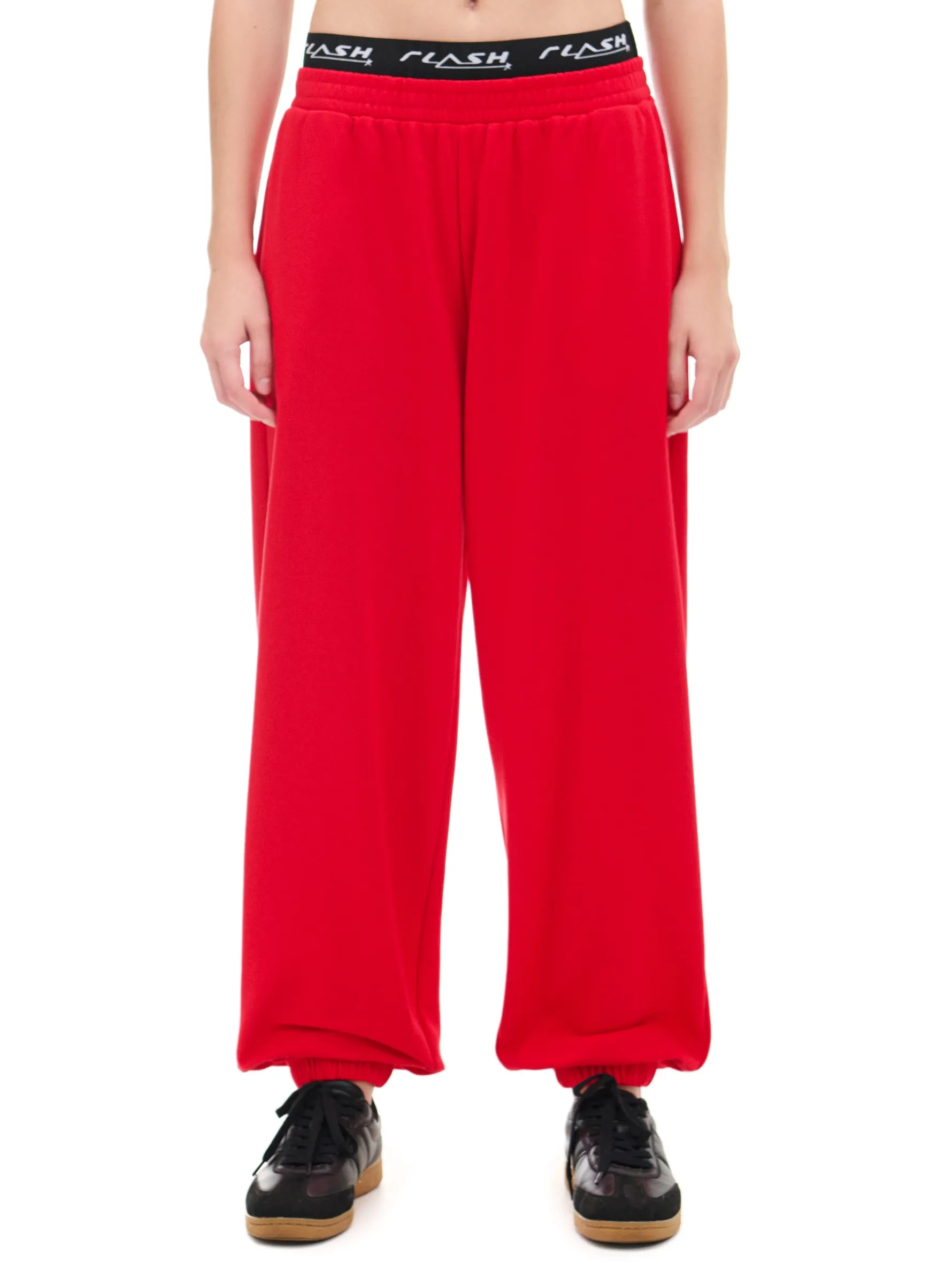 Dzianinowe damskie spodnie o sportowym kroju, uszyte z mieszanki materiałów z dodatkiem bawełny french terry. Te miękkie, wygodne i wytrzymałe joggery są gotowe na każdy rodzaj aktywności. dresowe spodnie typu jogger dzianinowy materiał z bawełną długie nogawki zwężane ku dołowi, wykończone ściągaczem w pasie od wewnątrz wszyta gumka dodatkowa guma z nadrukiem