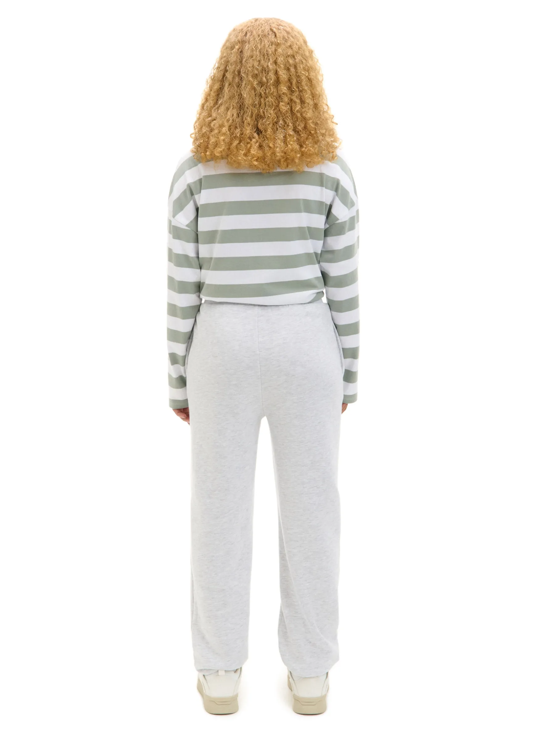 Damskie spodnie dresowe uszyte z gładkiej mieszanki dzianin. Ściągacze w pasie i przy nogawkach zapewniają dopasowanie i nie krępują ruchów podczas codziennych aktywności. spodnie typu jogger uszyte z miękkiej dzianiny z bawełną regularny stan elastyczna gumka w pasie długie nogawki wykończone ściągaczem otwarte kieszenie po bokach brzegi zakończone prążowanym materiałem niewielki haft z przodu