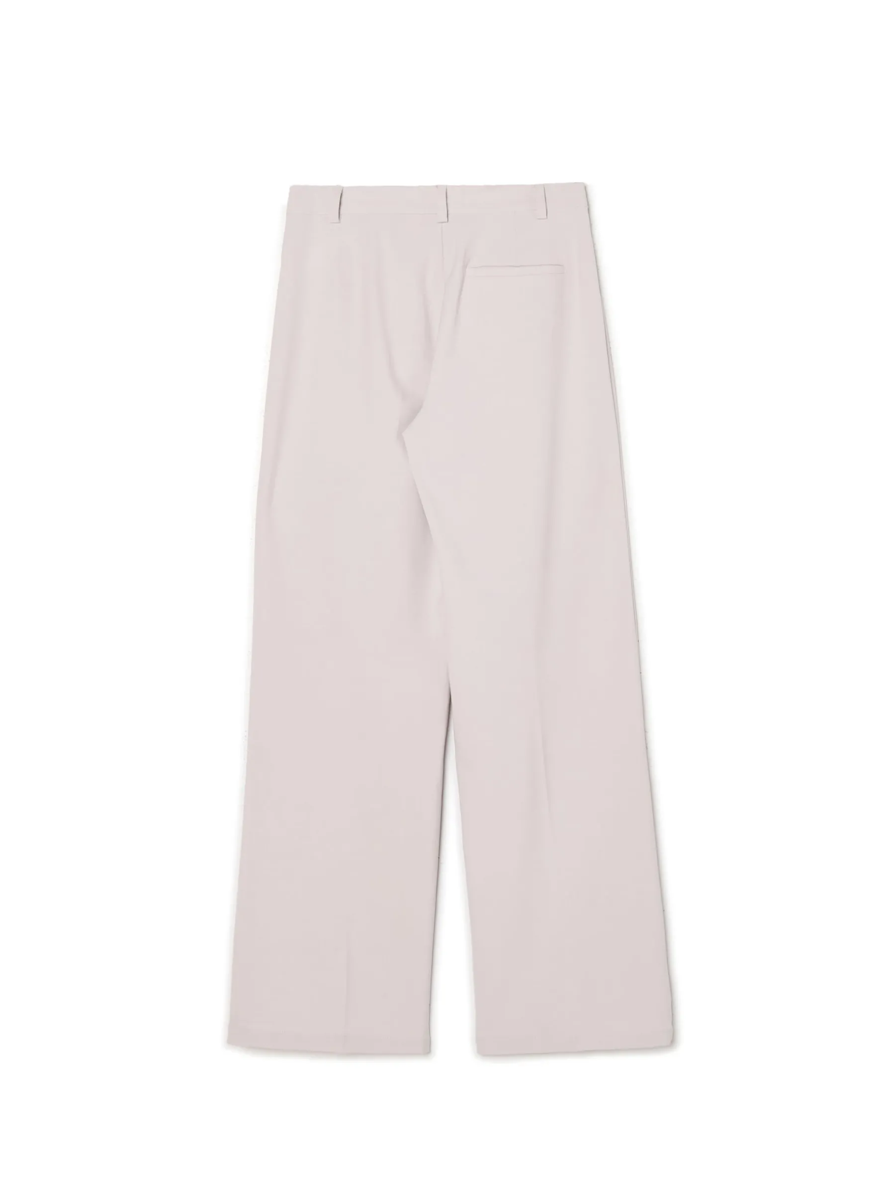 Damskie spodnie typu tailoring, uszyte z mieszanki tkanin z wiskozą i elastycznymi włóknami. Idealne do pracy, szkoły, czy na uczelnię. lekki materiał z wiskozą spodnie o fasonie tailoring wysoki stan zapięcie na zamek i guzik długie, proste nogawki imitacja kieszeni z tyłu Wzrost modelki: 177 cm
