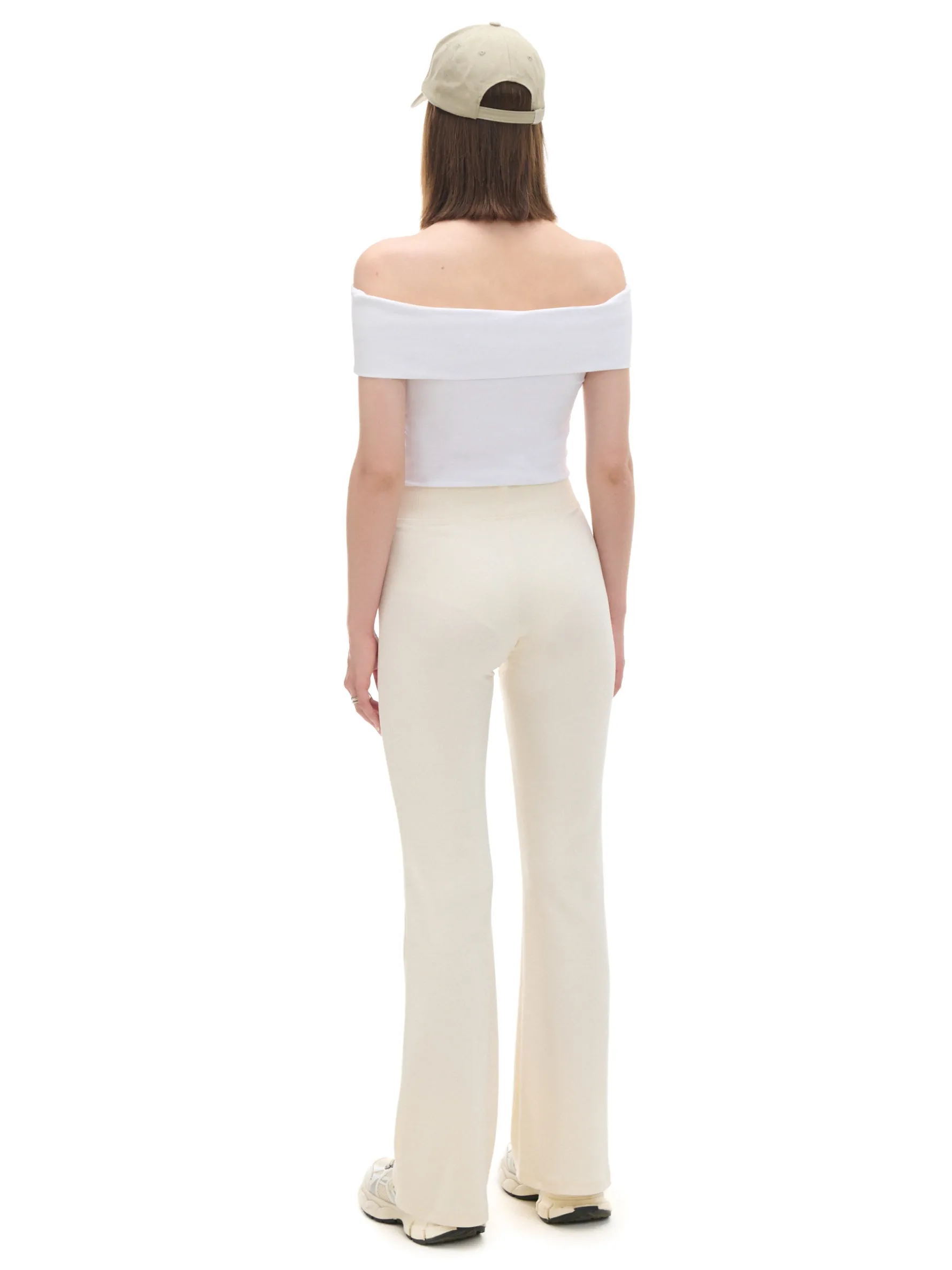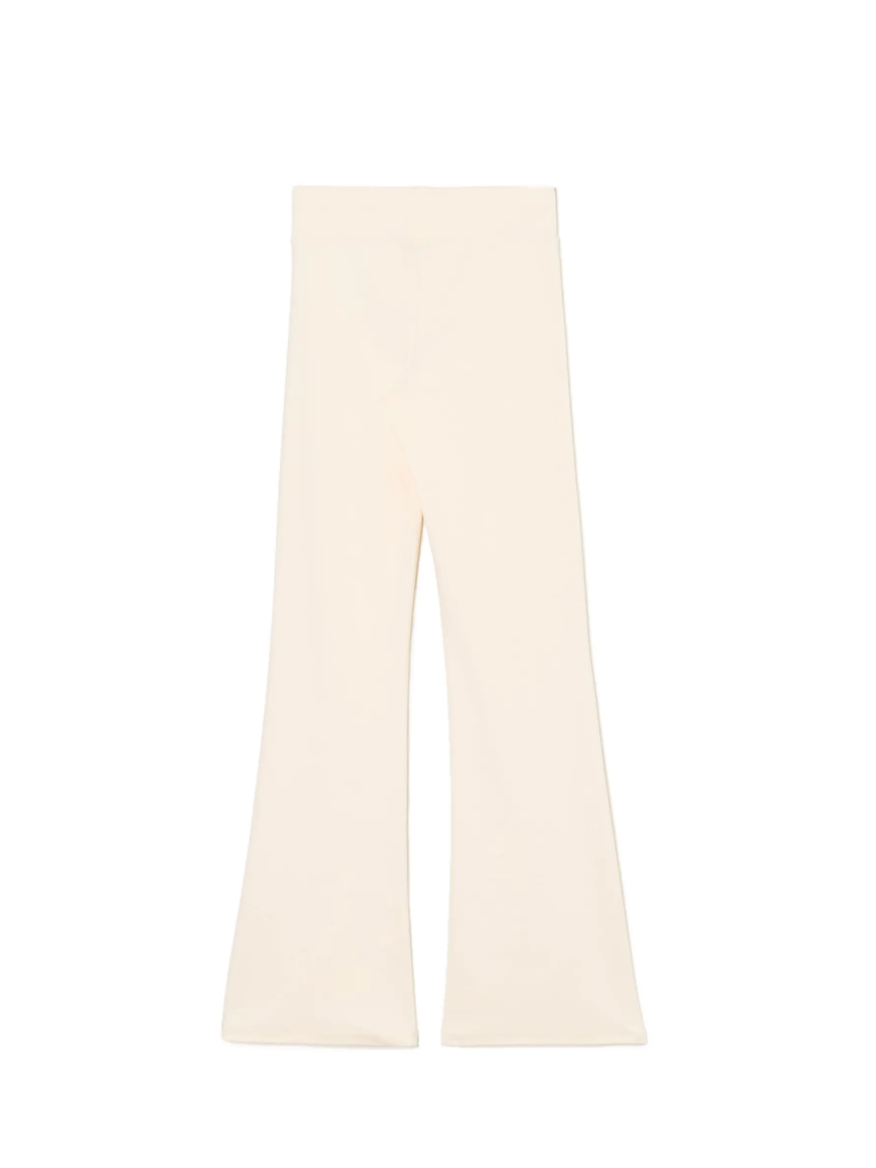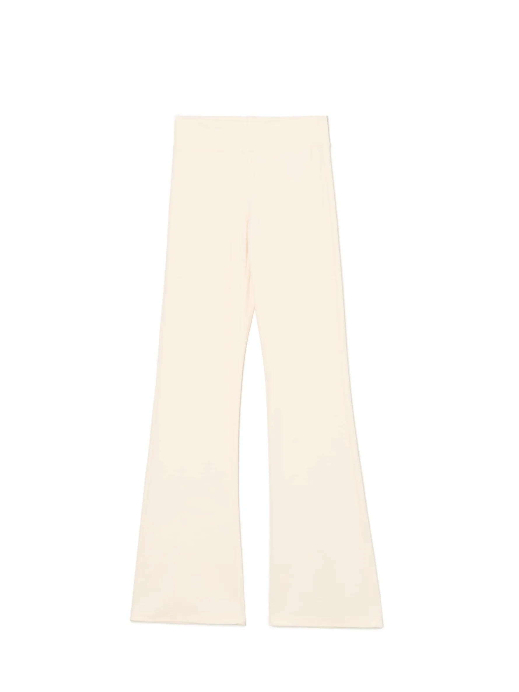 Damskie spodnie dresowe typu flare, uszyte z mieszanki dzianin z bawełną. Elastyczna guma w pasie podkreśli Twoją talię i zapewni komfort podczas każdej aktywności. dzianinowy materiał z bawełną wysoki stan podkreślający talię długie, lekko rozszerzane nogawki Wzrost modelki: 172 cm