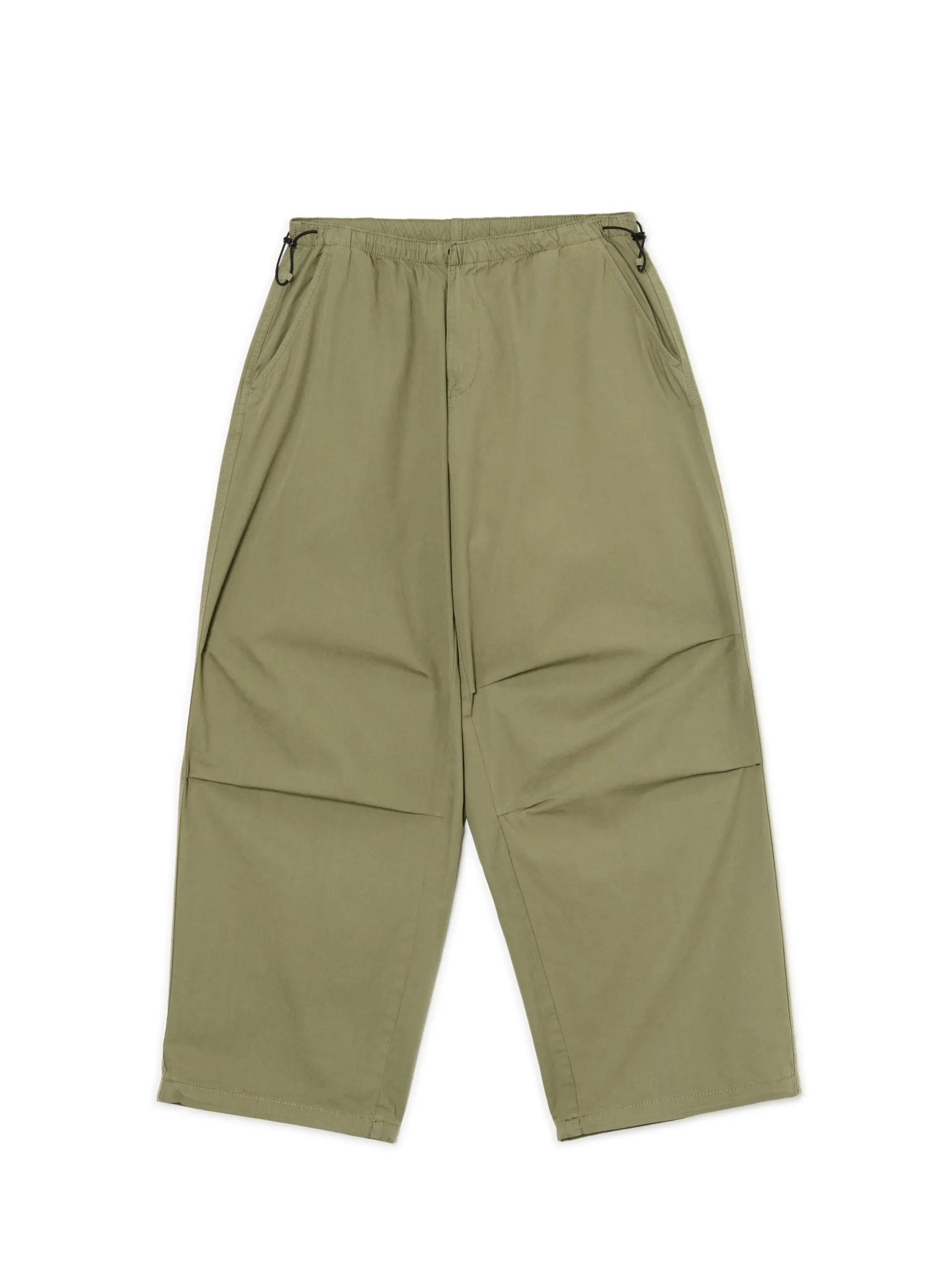 Męskie spodnie typu parachute, uszyte z bawełny w kolorze oliwkowym. Wygodna regulacja w pasie, oryginalne zakładki i pojemne kieszenie to must have spontanicznych wypadów. 100% bawełny swobodny, luźny krój zapięcie na zatrzask i zamek regulacja dołu i pasa za pomocą sznurka ze stoperem trzy kieszenie, jedna zapinana na zatrzask ozdobne zakładki