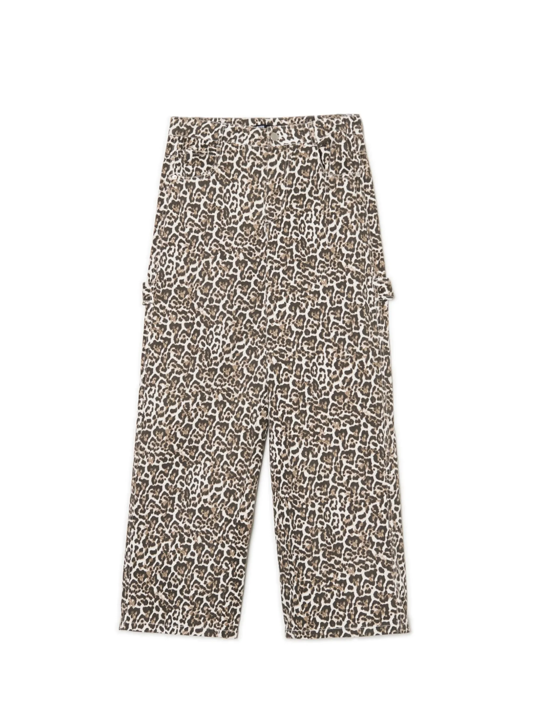 Spodnie damskie o kroju baggy, uszyte z mocnej, bawełnianej tkaniny typu twill. Nadruk z modnym, zwierzęcym motywem na całej powierzchni materiału wyróżni Cię w tłumie. 100% bawełny obszerny krój baggy zapięcie na zamek i guzik dwie kieszenie po bokach dodatkowa mała kieszonka w środku naszywane kieszenie z tyłu hammer loop na obu nogawkach zwierzęcy wzór Wzrost modelki: 177 cm