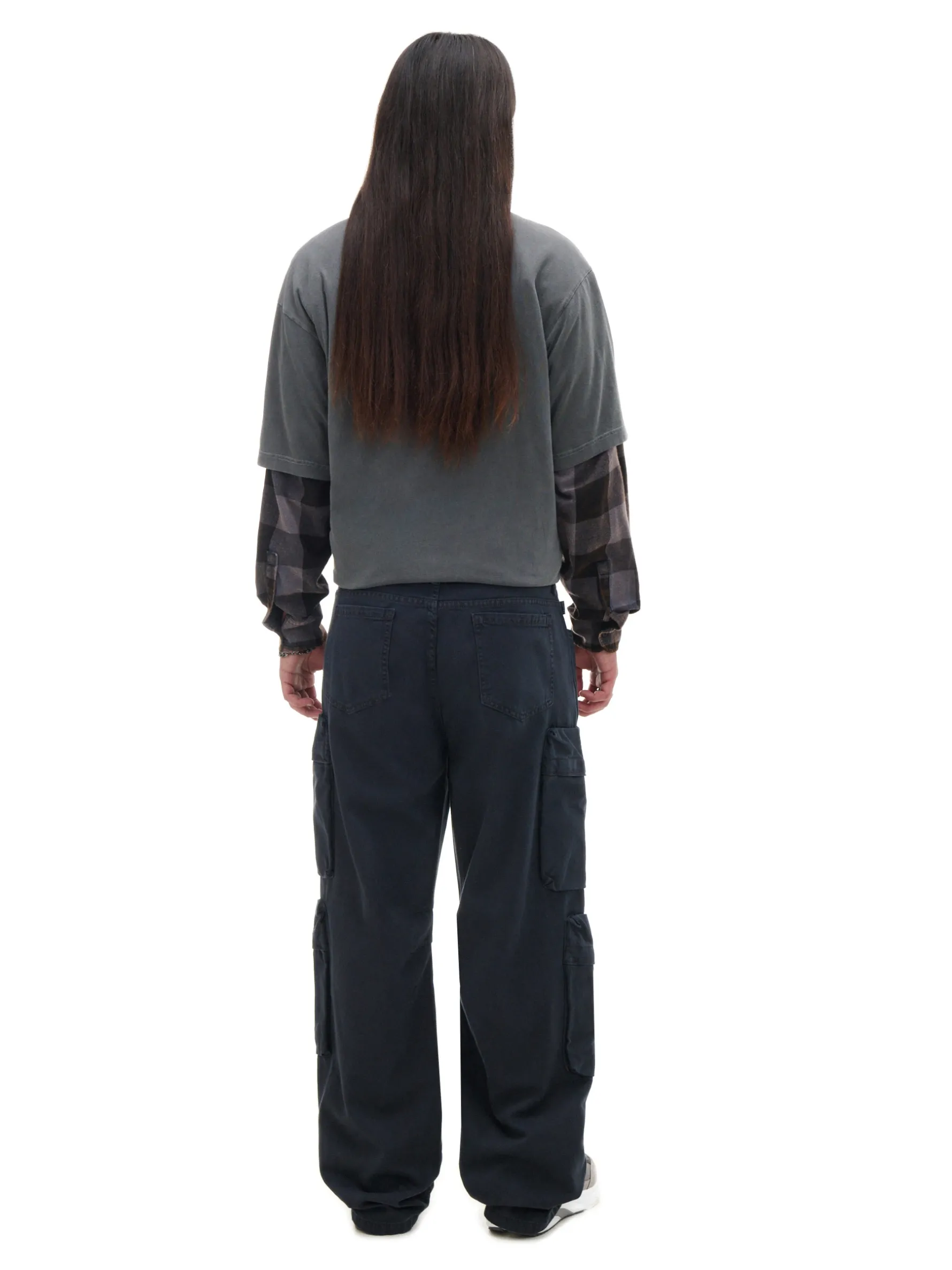 Spodnie męskie typu loose uszyte z bawełnianej tkaniny w szarym kolorze. Wyposażone w serię kieszeni, w których przechowasz niezbędne rzeczy. 100% bawełny prosty, luźny krój zapięcie na zamek i guzik dwie kieszenie boczne i dwie naszyte tylne kieszenie z patkami po bokach szlufki na pasek ozdobne przeszycia