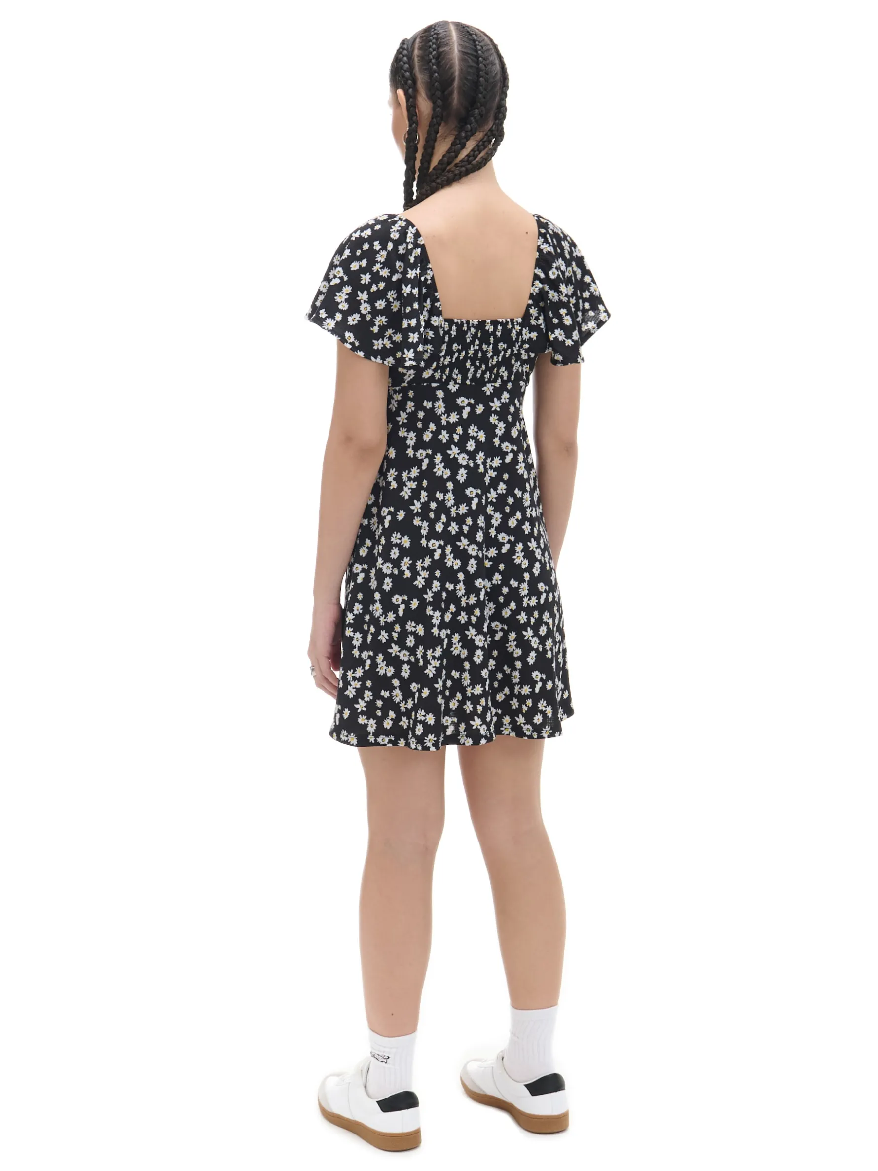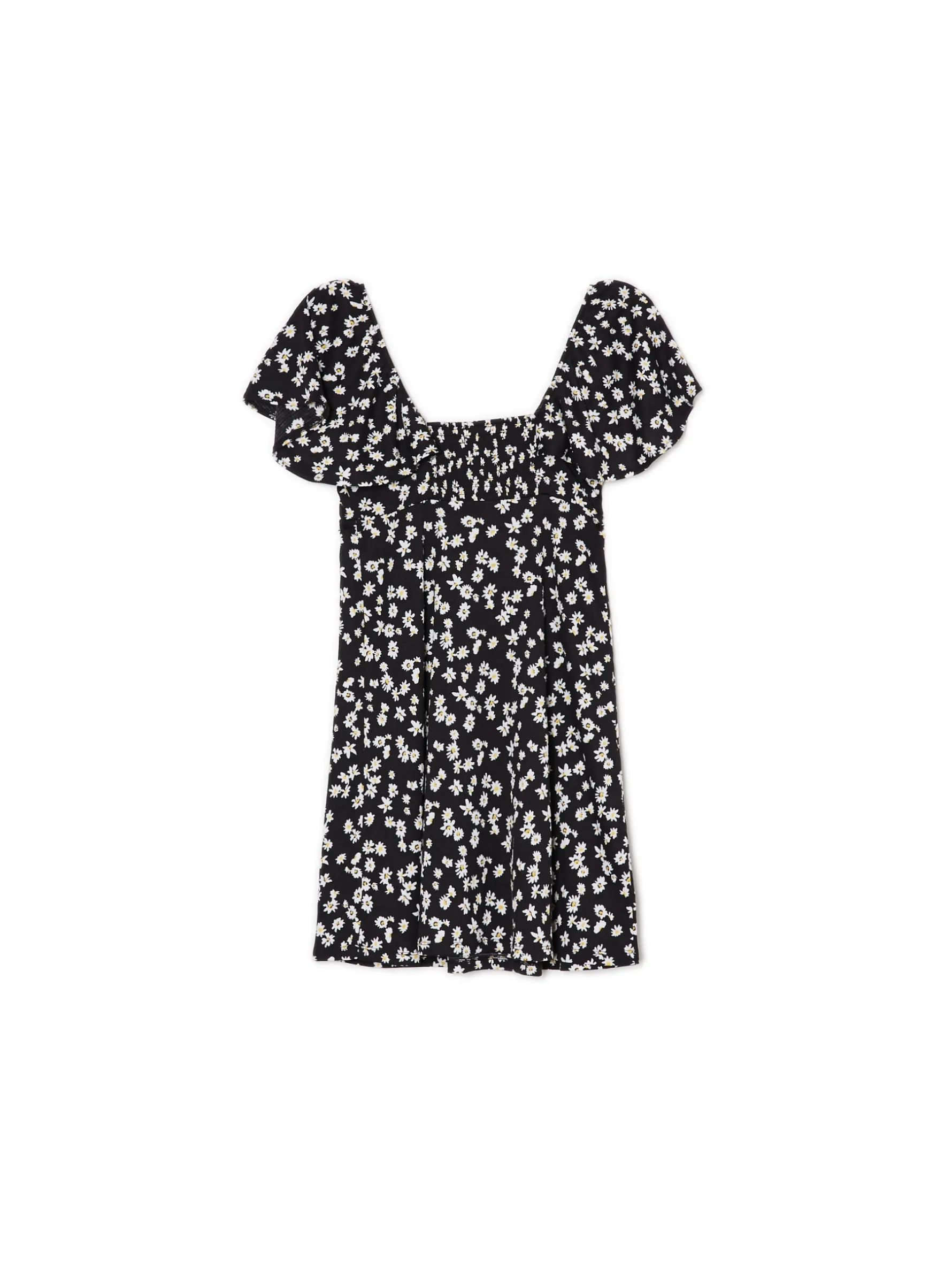 Cropp Sukienki, Kombinezony*Czarna sukienka mini w stokrotki biały