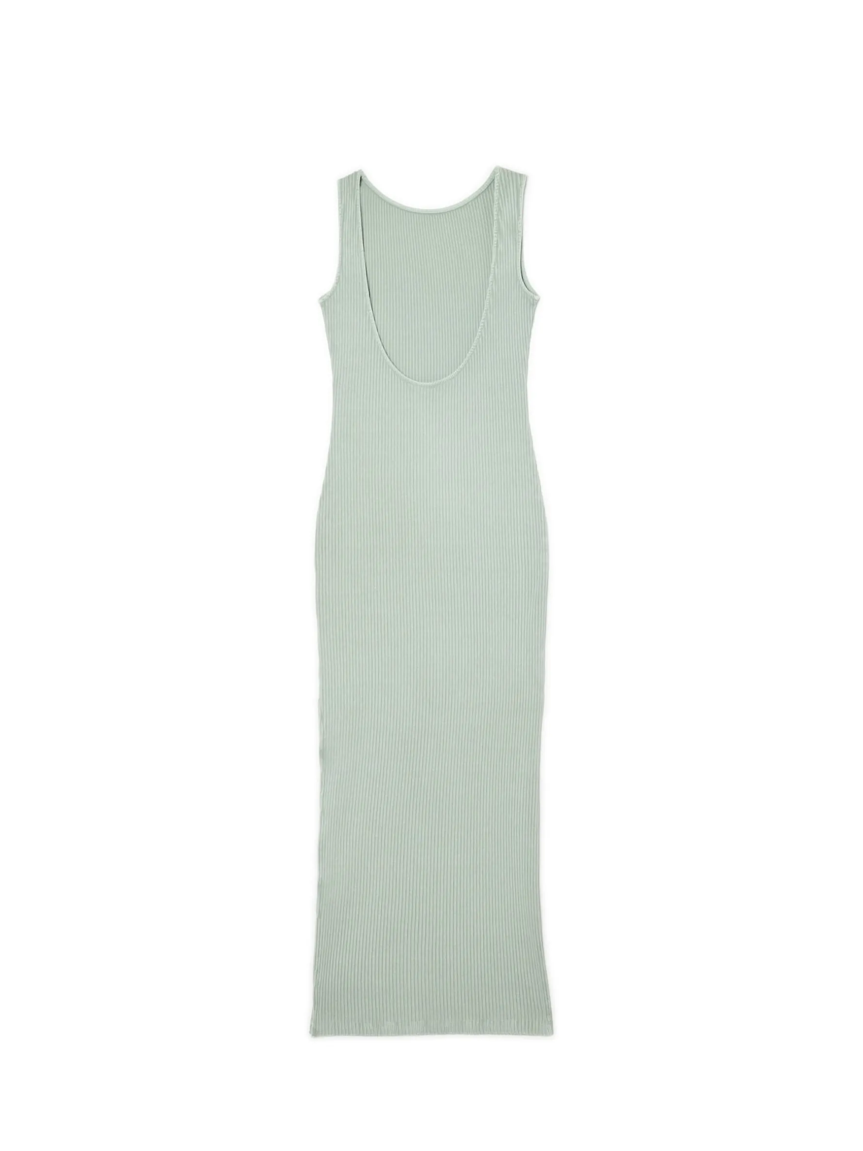 Cropp Sukienki, Kombinezony*Prążkowana oliwkowa sukienka midi zielony