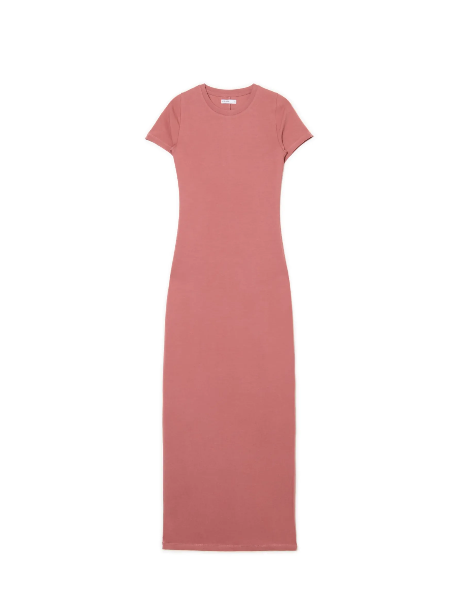 Damska sukienka maxi o dopasowanym kroju, uszyta z mieszanki dzianin z bawełną. Dobierz do tego modelu swoje ulubione dodatki i ruszaj na miasto! bawełna z dodatkiem elastycznych włókien długość maxi i dopasowany krój krótkie, ukośnie ścięte rękawy półokrągły dekolt z lamówką Wzrost modelki: 172 cm