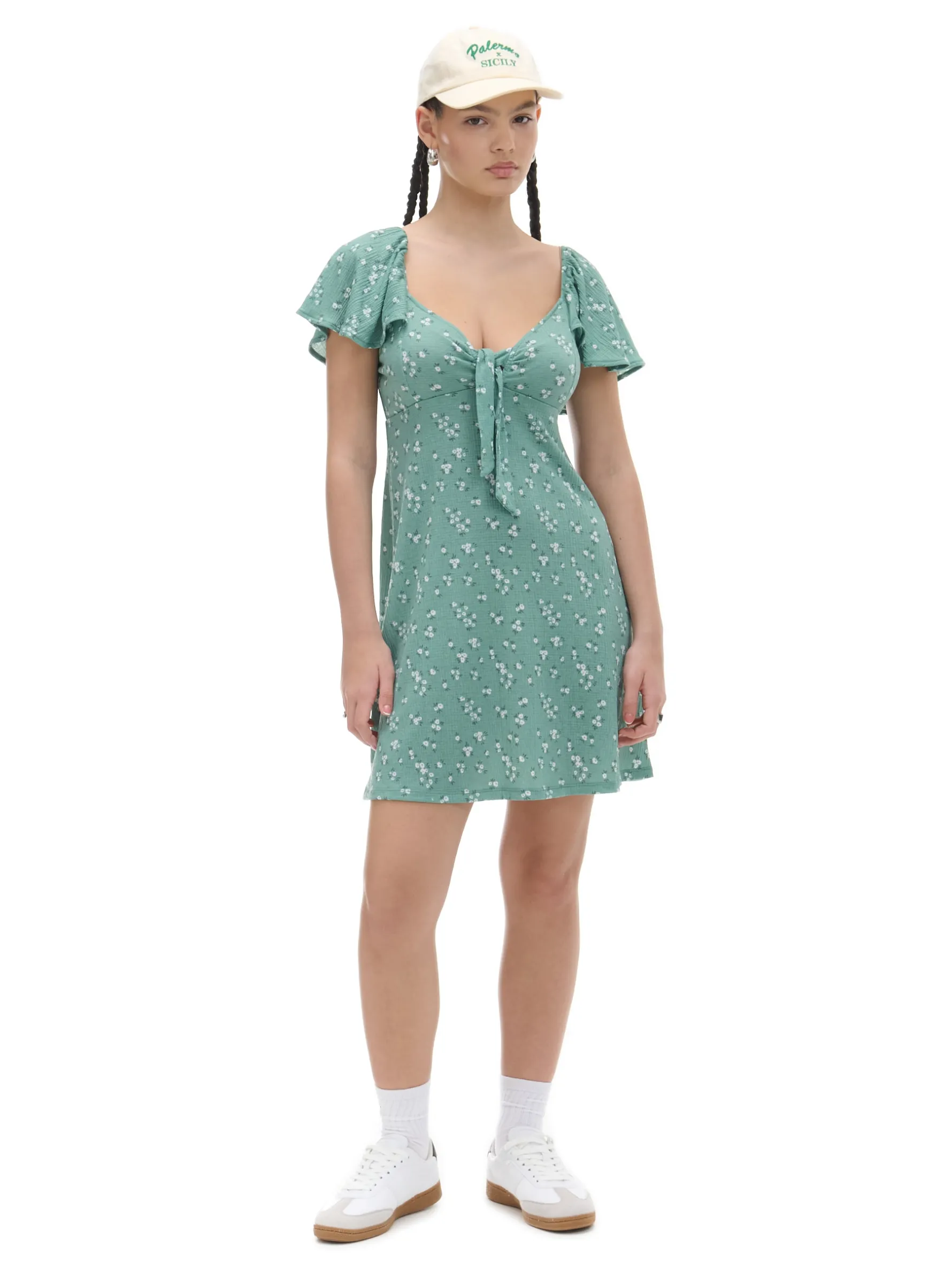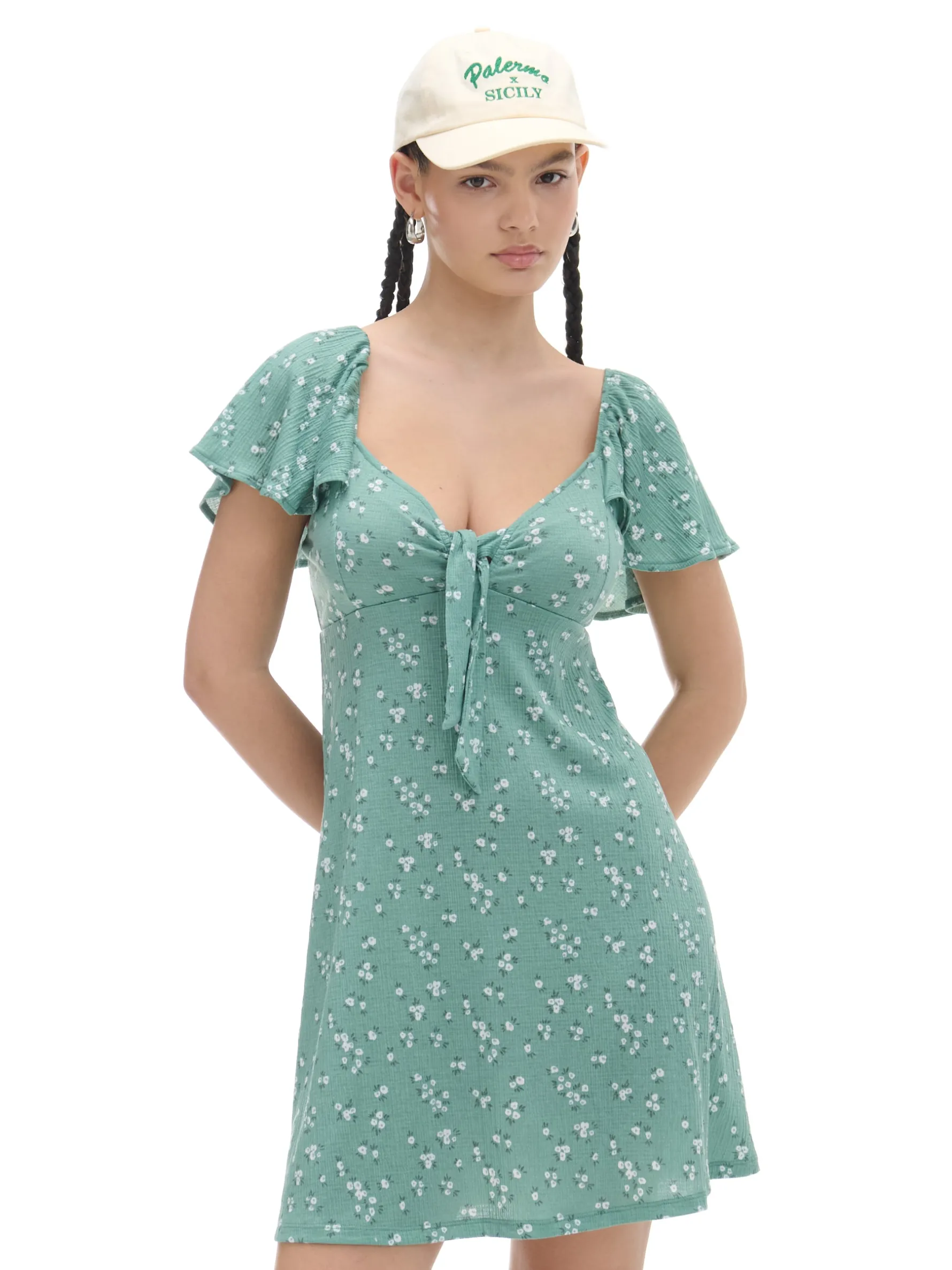 Cropp Sukienki, Kombinezony*Zielona sukienka mini w stokrotki zielony