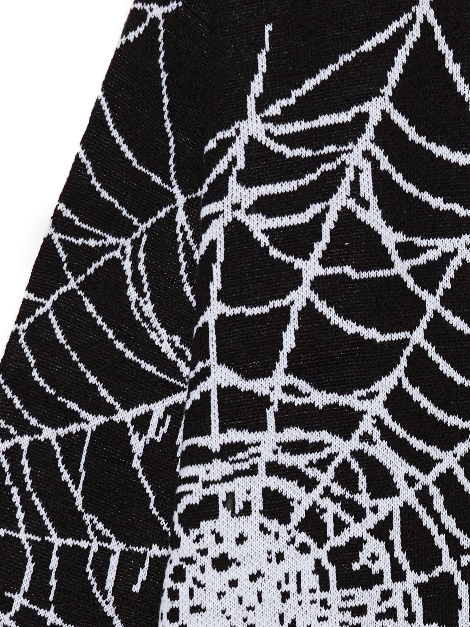 Czarny męski sweter, uszyty z miękkiej żakardowej dzianiny. Idealny na casualowe Halloween! luźny krój boxy dolny brzeg i długie rękawy zakończone ściągaczem nadruk z motywem Halloween