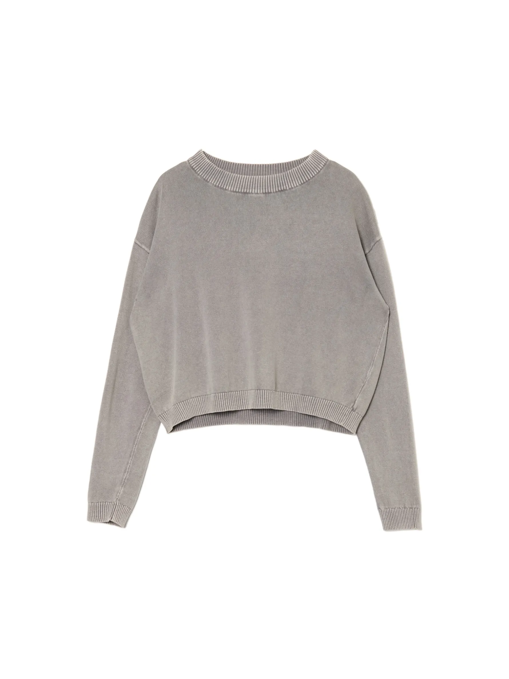 Damski sweter o regularnym kroju, uszyty z trwałego bawełnianego materiału z efektem sprania. Dostępny w kilku kolorach. 100% bawełny regularny krój półokrągły dekolt długie, swobodne rękawy dół i rękawy wykończone prążkowanym ściągaczem