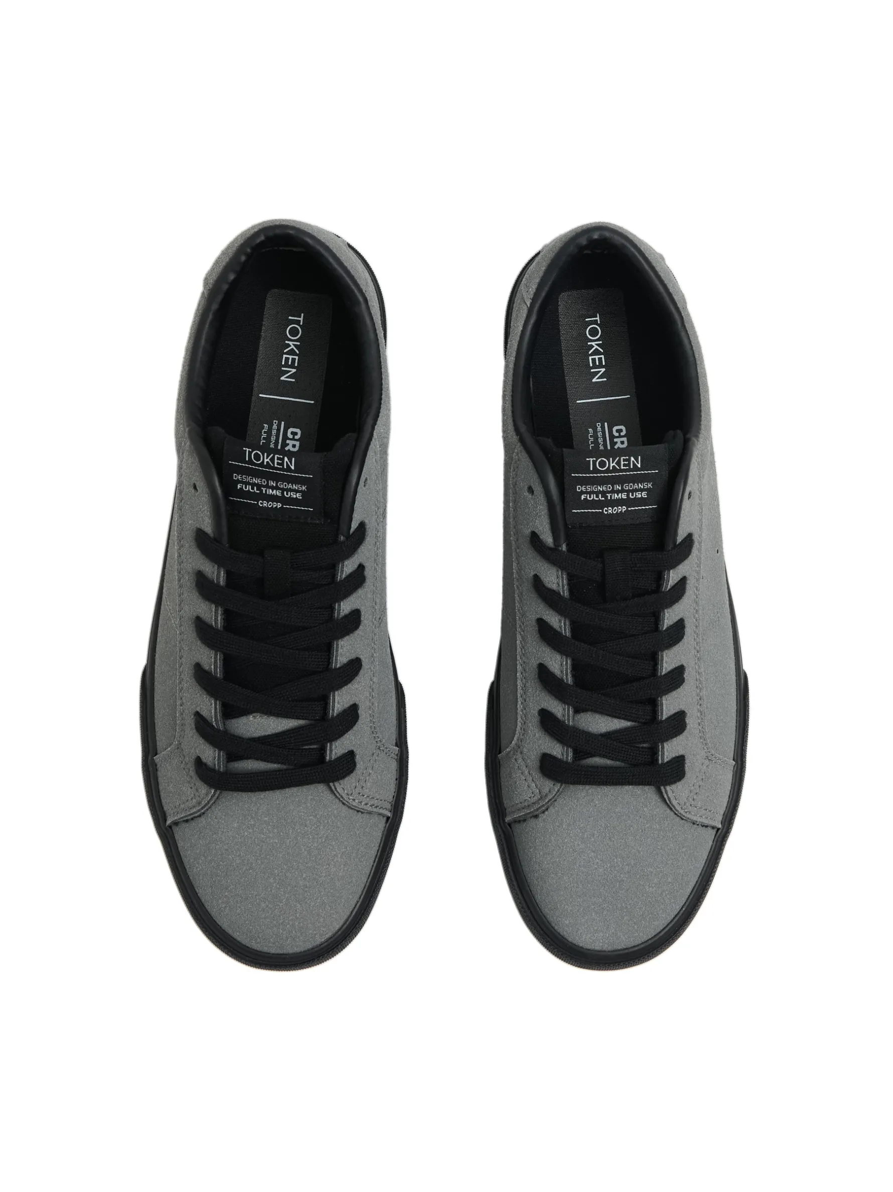Szare męskie trampki o niskim, wygodnym fasonie. Klasyczny item, który dopasujesz do wielu stylizacji. sznurowane trampki w klasycznym stylu elastyczna cholewka z łączonych materiałów płaska gumowa podeszwa wiązane na płaskie, czarne sznurowadła