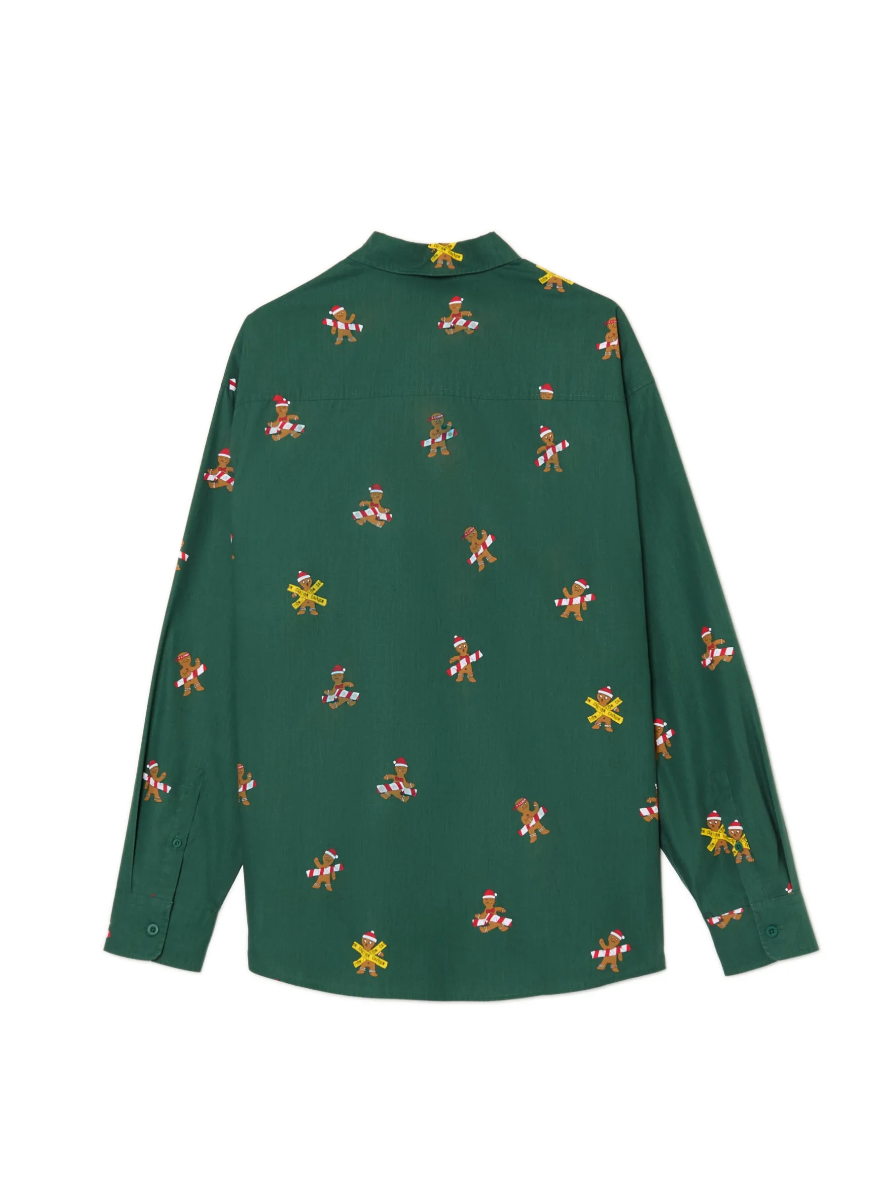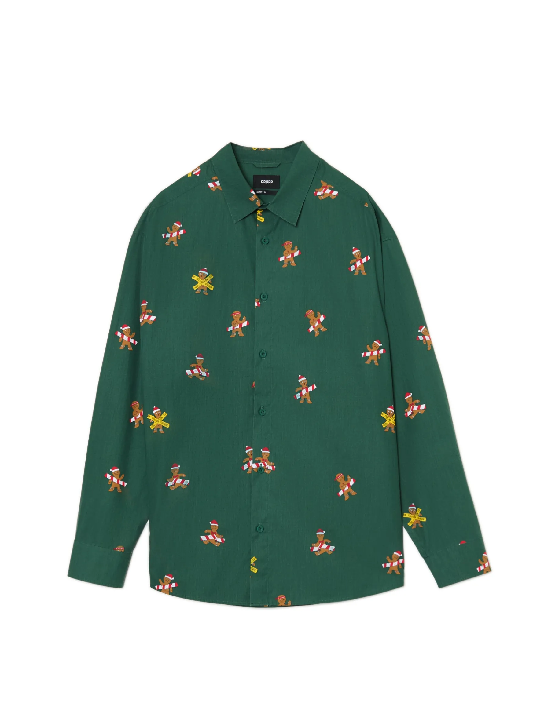 Świąteczne meetingi tylko w tej casualowej męskiej koszuli z nadrukiem zwariowanych pierników. Uszyta z delikatnego w dotyku, przyjemnego dla ciała materiału. Ten item będzie sztosowym uzupełnieniem Twoich bożonarodzeniowych stylizacji! przyjemny w dotyku materiał regularny krój jednorzędowe zapięcie na guziki klasyczny kołnierzyk długie rękawy zakończone mankietem z guzikami nadruk z motywem Xmas