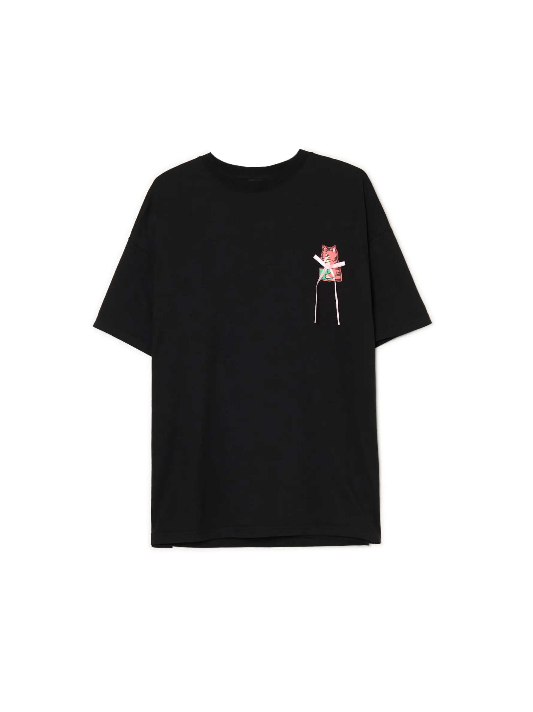 Bożonarodzeniowy merch już w sprzedaży! Damski czarny T-shirt uszyty z bawełnianej dzianiny ze świątecznymi naszywkami po obu stronach. Idealny casual na rodzinne meetingi! 100% bawełny oversizowy krój okrągły dekolt z lamówką krótkie, szerokie rękawy ozdobne naszywki z motywem Xmas
