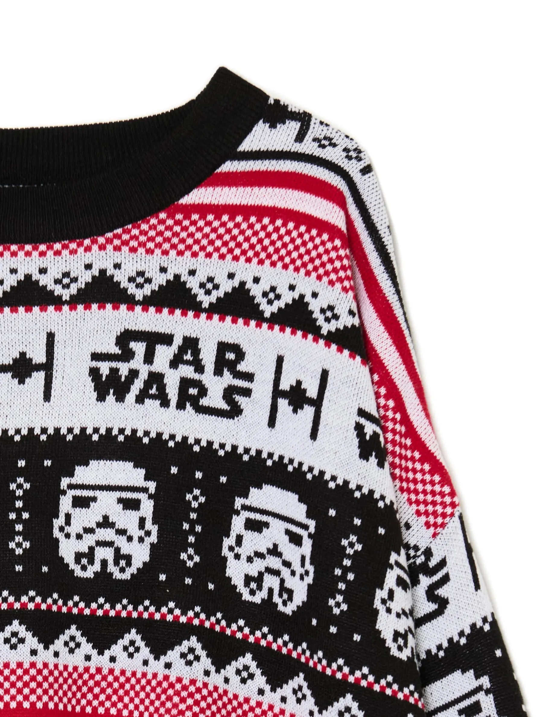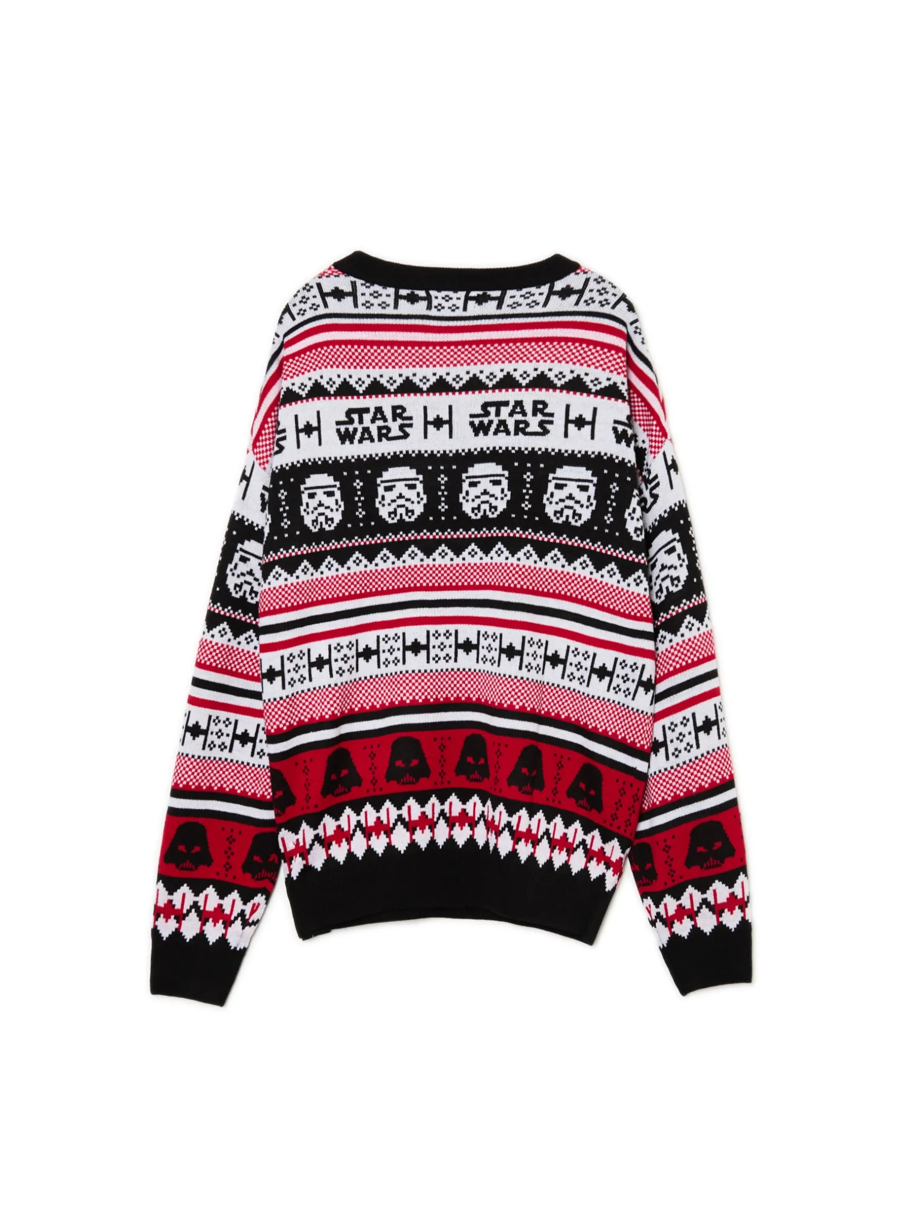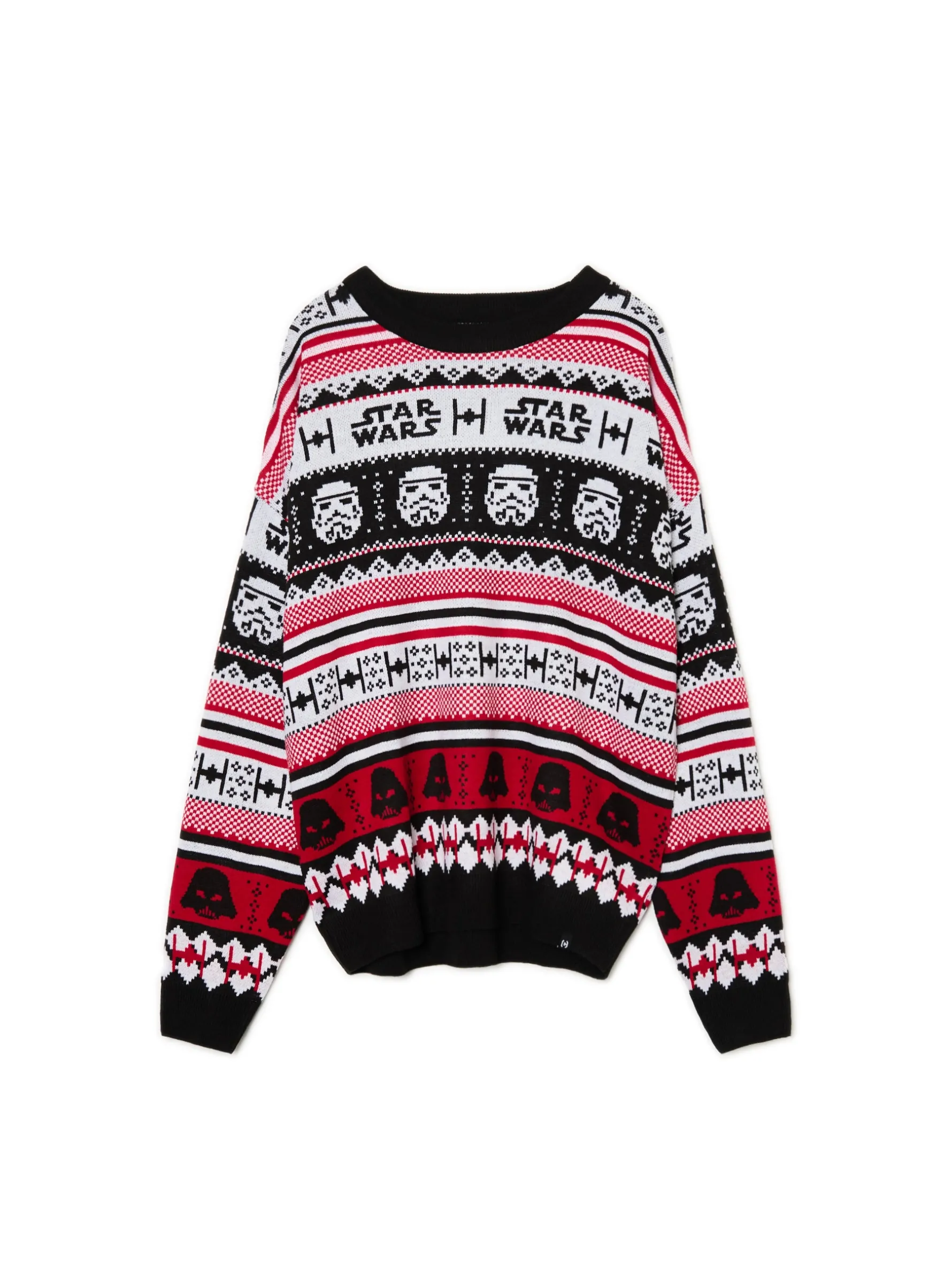 Męski sweter o kroju boxy, uszyty z przyjemnej w dotyku, żakardowej dzianiny. Na całości nadruki z serii Star Wars w bożonarodzeniowym wydaniu. Łap ten item, a świąteczna moc Cię nie opuści! uszyty z miękkiej dzianiny obszerny krój boxy okrągły dekolt z lamówką długie rękawy lekko obniżona linia ramion dół i rękawy wykończone prążkowanym ściągaczem nadruk z motywem Xmas starwars.com © & TM Lucasfilm Ltd.