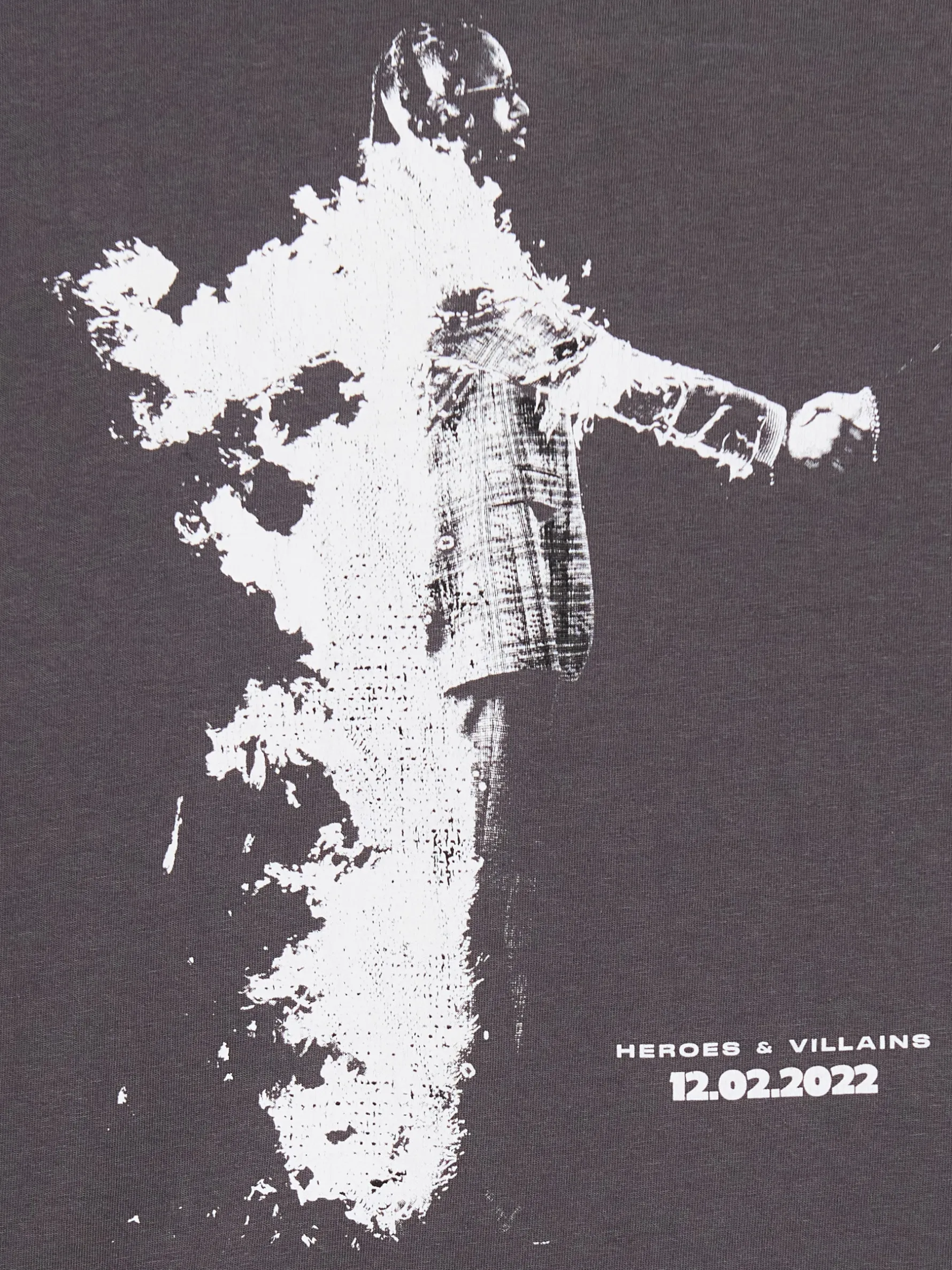 Damska koszulka z krótkim rękawem uszyta z bawełny w ciemnoszarym kolorze. Po obu stronach licencjonowane grafiki inspirowane twórczością Metro Boomina. 100% bawełny krój oversize krótkie, szerokie rękawy oryginalny print Ten produkt należy do kolekcji UNISEX – zalecamy wybranie mniejszego rozmiaru niż zazwyczaj, jeśli chcesz uniknąć efektu oversize. © 2024 METRO BOOMIN UNDER LICENSE TO BRAVADO INTERNATIONAL GROUP