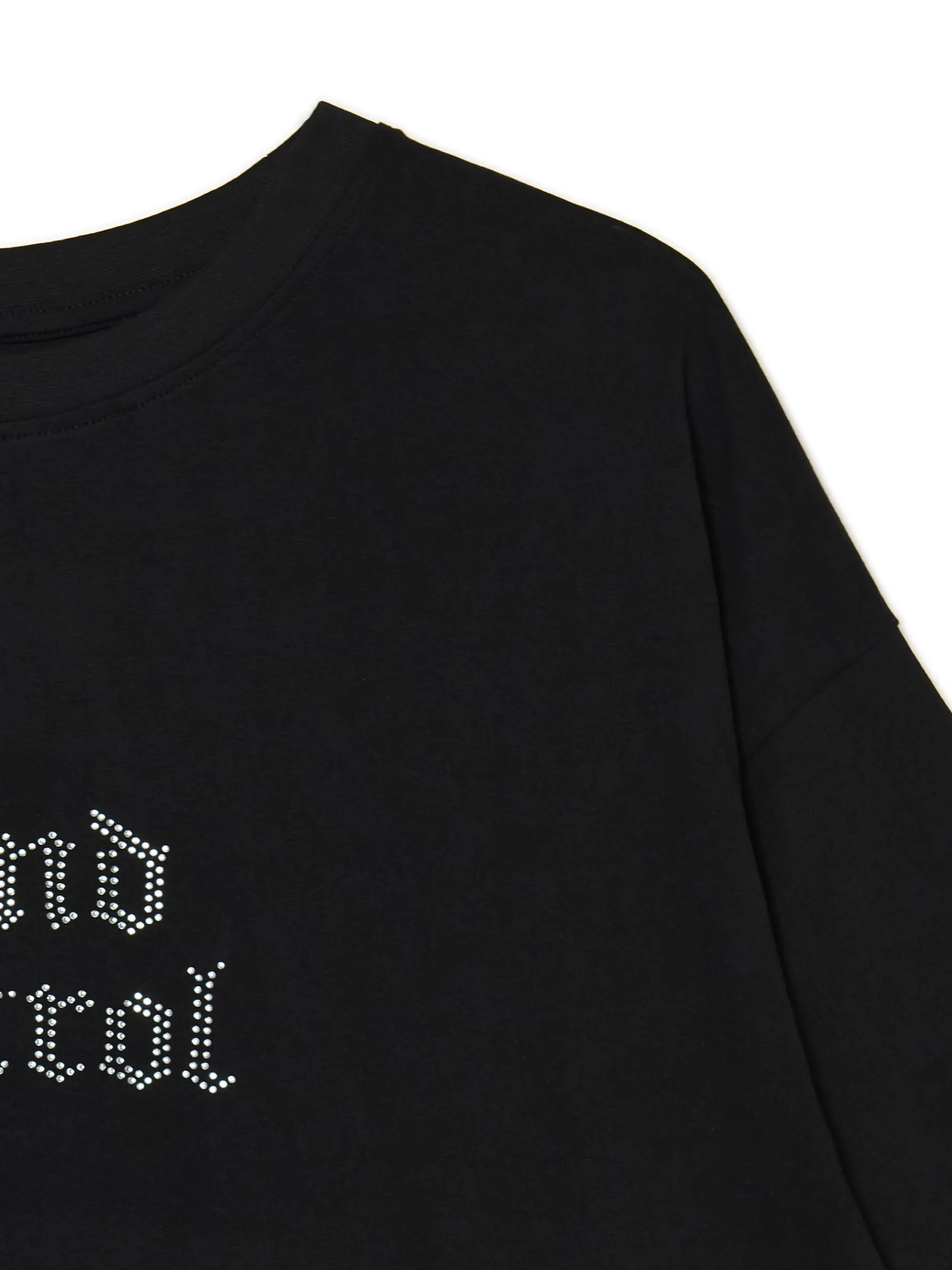Bawełniana damska koszulka o kroju oversize z napisem z przodu i dużym nadrukiem na plecach. Sztosowy model na wieczorne wypady! 100% bawełny oversizowy krój krótkie, swobodne rękawy tekstowy nadruk z przodu na plecach stylizowany print i błyszczące kryształki Ten produkt należy do kolekcji UNISEX – zalecamy wybranie mniejszego rozmiaru niż zazwyczaj, jeśli chcesz uniknąć efektu oversize.
