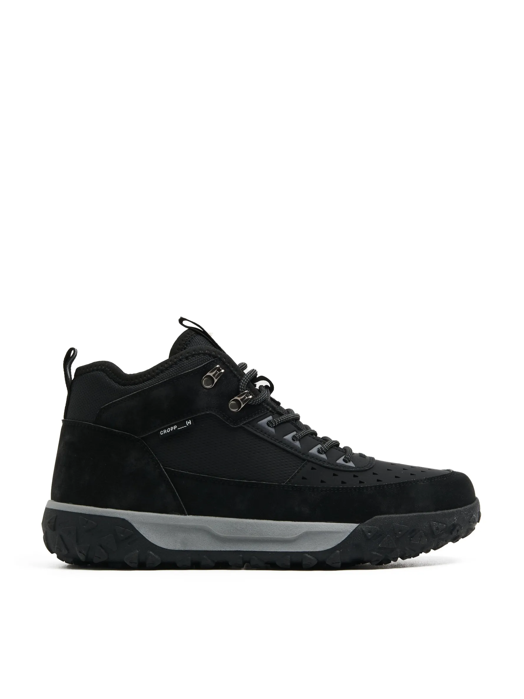 Mamy dla Ciebie męskie wysokie sneakersy, wykonane z łączonych materiałów. Wypustki na cholewce usprawniają przepływ powietrza. Dodatkowo gąbkowanie wokół kostki i wysokie wiązanie usztywniają stopę. Wejdź w zimę z naszymi butamI! sznurowane sneakersy z ociepleniem wykonane z łączonych materiałów cholewka za kostkę z dekoracyjnymi cięciami lekkie gąbkowanie wokół kostki wiązane na elastyczne, prążkowane sznurówki sznurowadła z efektem reflective dwukolorowa podeszwa z termoplastycznej gumy wygodny uchwyt do wkładania i zdejmowania butów naszywka Cropp